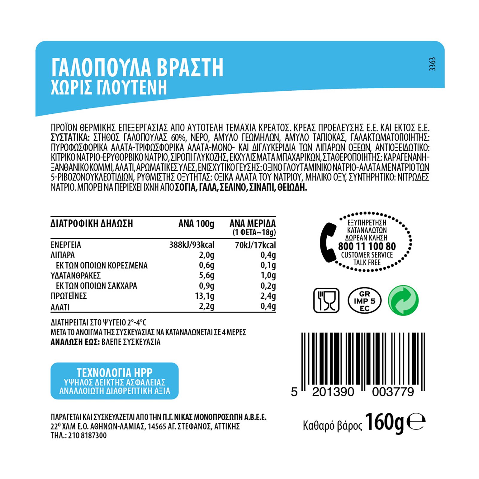 NIKAS Βραστή Γαλοπούλα σε φέτες Χωρίς γλουτένη 160g
