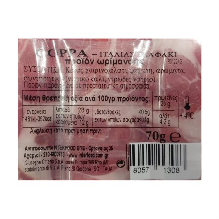 Παραδοσιακό ιταλικό αλλαντικό που παρασκευάζεται από εκλεκτό κρέας χοιρινής ωμοπλάτης με φυσική ωρίμανση .