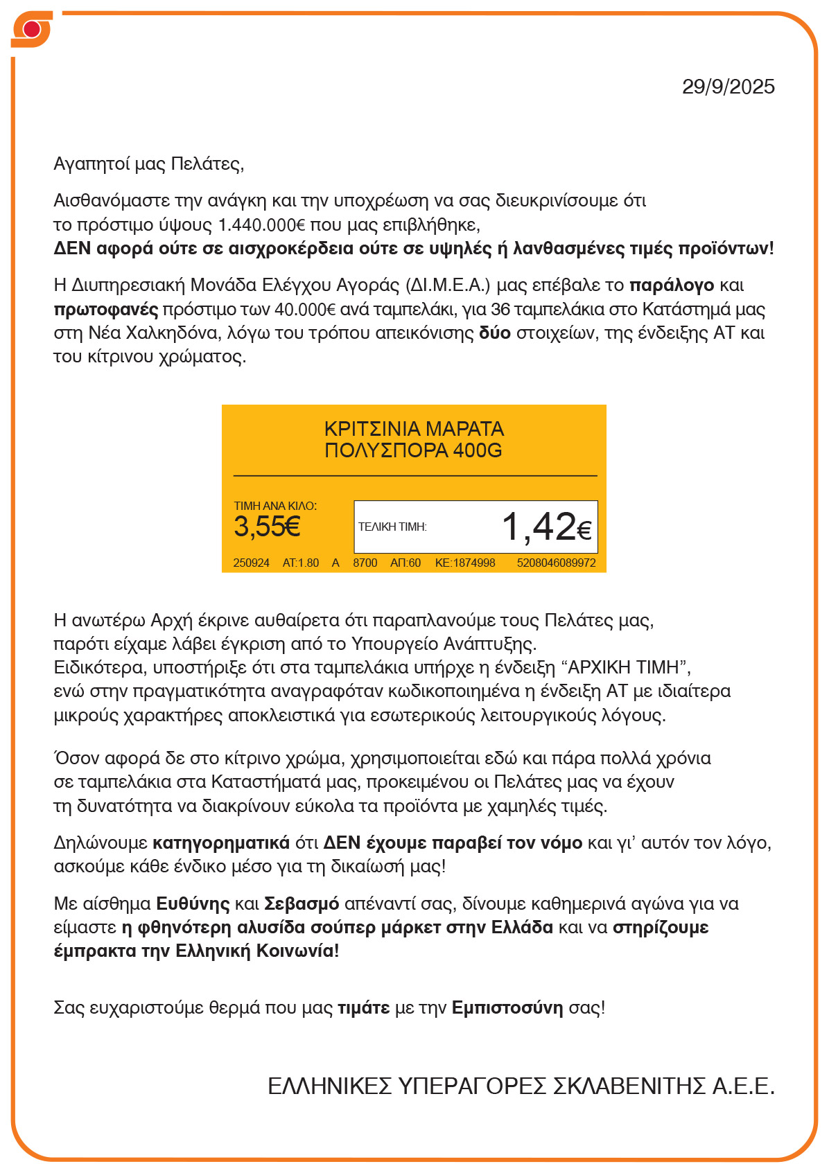 Η Επιχείρησή μας ουδέποτε έχει δημιουργήσει φυλλάδια προσφορών και συστήνει στους καταναλωτές να ενημερώνονται για τις ισχύουσες προσφορές προϊόντων μέσω του eMarket μας.