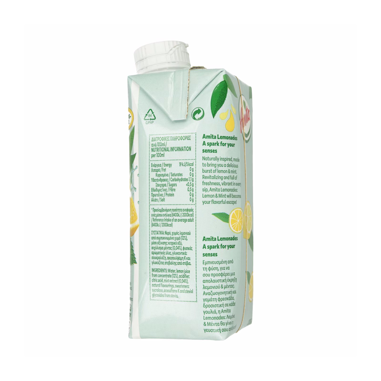 AMITA Lemonades Φρουτοποτό με Λεμόνι & Μέντα Χωρίς ζάχαρη 330ml