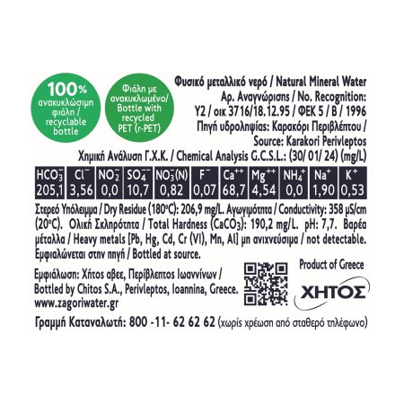 ΧΗΤΟΣ Α.Β.Ε.Ε., 12ο χλμ. Ιωαννίνων – Κόνιτσας, 455 00 Ιωάννινα, Τ: 2651061843, 2651085033-4, Γραμμή Καταναλωτή: 800-11-626262 (χωρίς χρέωση από σταθερό τηλέφωνο), F: 2651037074, Email: info@zagoriwater.gr