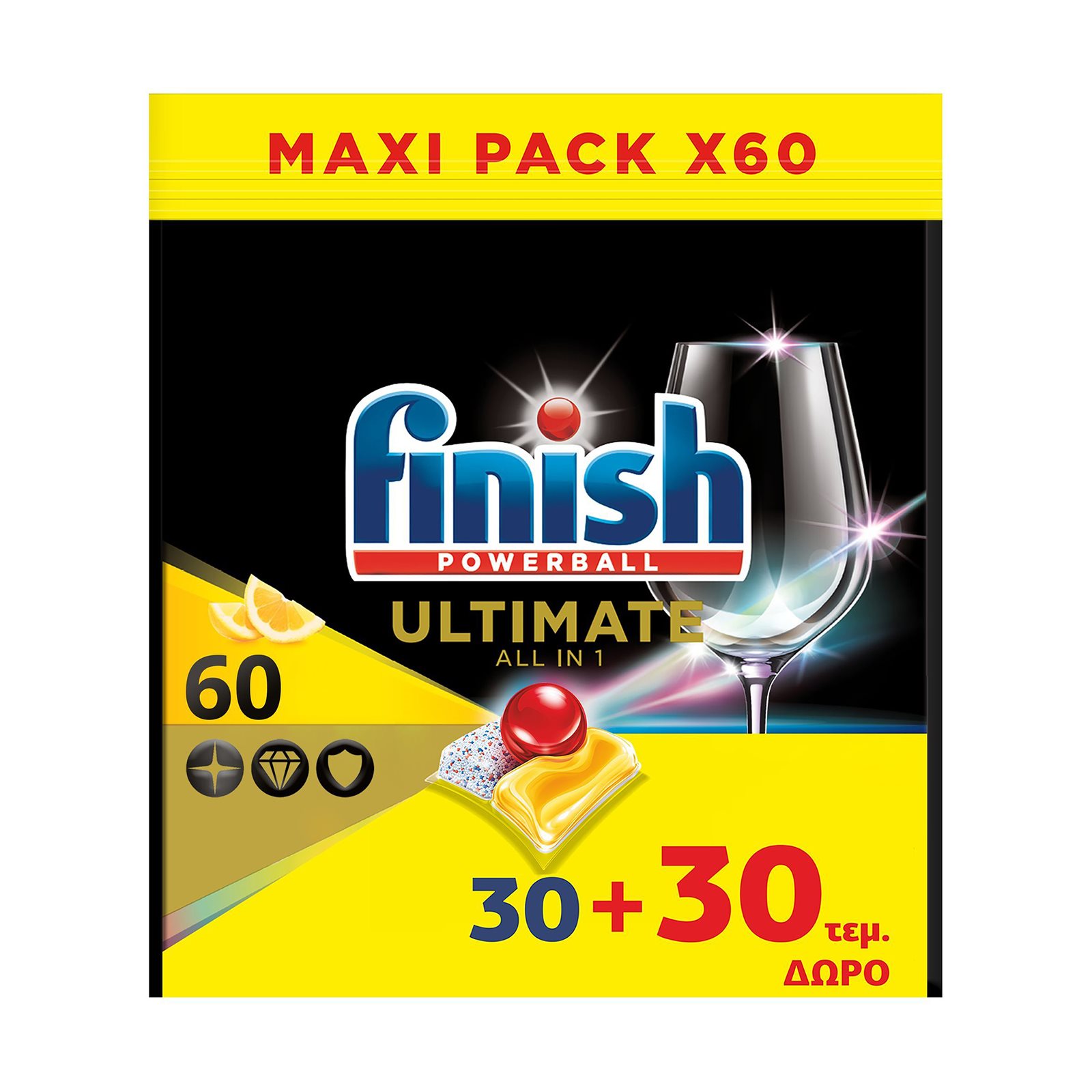 FINISH Powerball Ultimate Απορρυπαντικό Πλυντηρίου Πιάτων Ταμπλέτες Λεμόνι 30τεμ +30τεμ Δώρο
