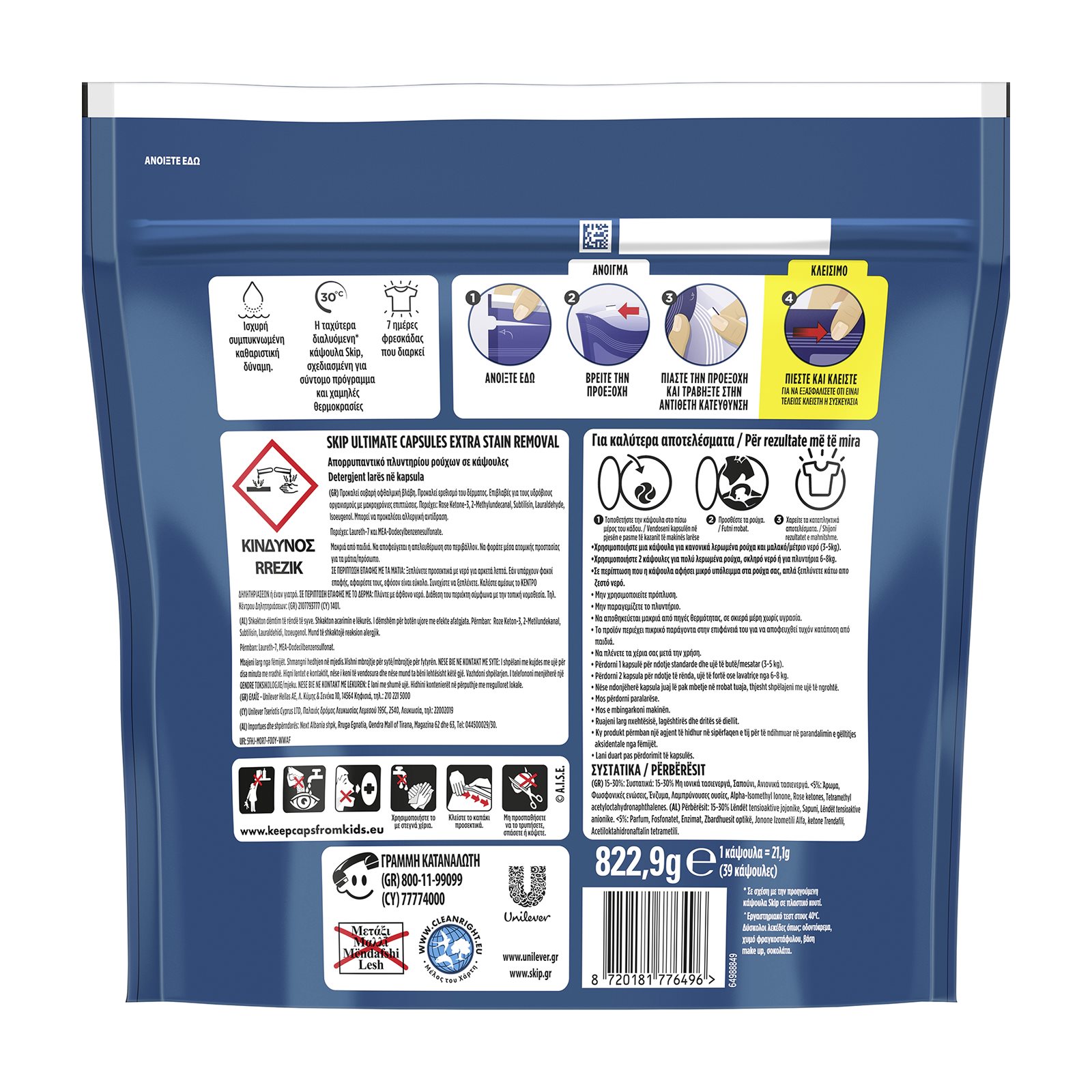 Χρησιμοποιήστε 2 κάψουλες για πολύ λερωμένα ρούχα, σκληρό νερό ή για πλυντήρια 6-8kg.
