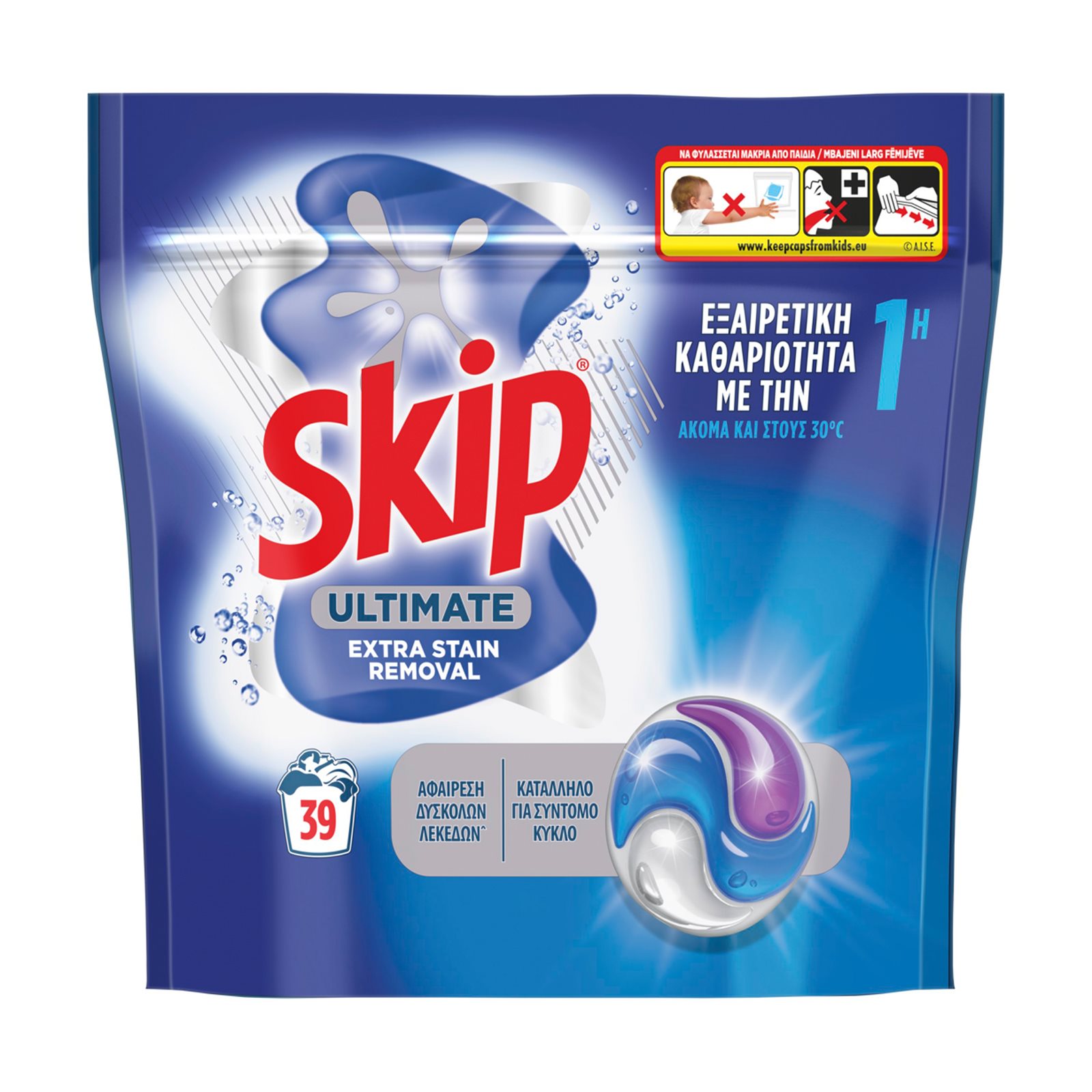 Χρησιμοποιήστε 2 κάψουλες για πολύ λερωμένα ρούχα, σκληρό νερό ή για πλυντήρια 6-8kg.