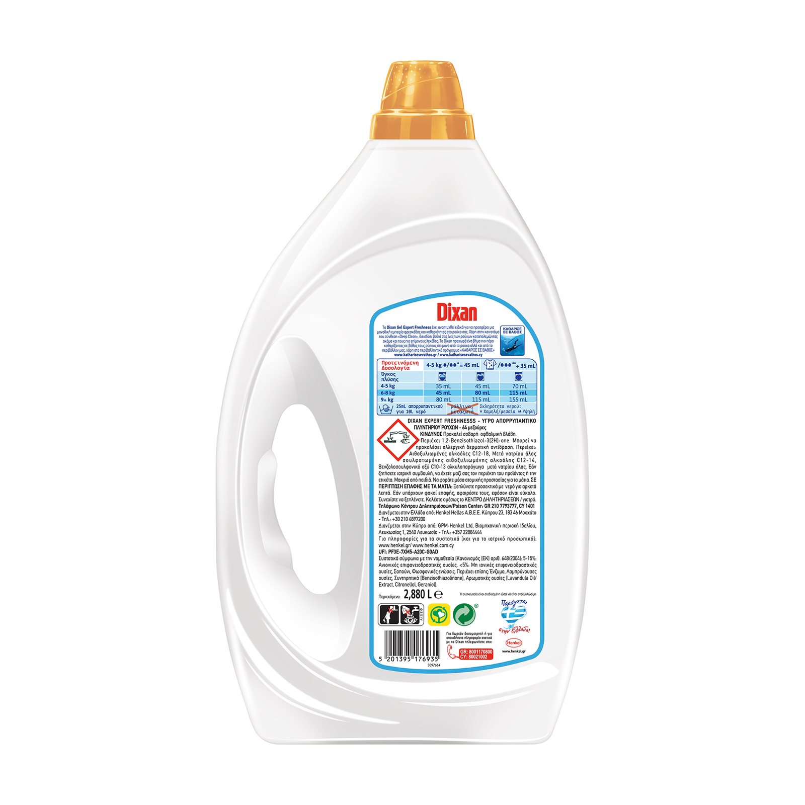 Το Dixan Gel Expert Freshness, έχει αναπτυχθεί ειδικά για να προσφέρει μια μοναδική εμπειρία καθαριότητας και ενισχυμένης φρεσκάδας που διαρκεί. Χάρη στην καινοτόμο του σύνθεση Deep Clean προσφέρει καθαριότητα σε βάθος τόσο στα ρούχα όσο και στο πλυντήριο. Διεισδύει σε βάθος και στο πλυντήριο, εξουδετερώνοντας τα υπολείμματα που προκαλούν δυσάρεστες οσμές, προσφέροντας του υγιεινή φρεσκάδα για ακόμη καλύτερα αποτελέσματα σε κάθε πλύση. Με το Dixan μπορείτε να εξοικονομείτε ενέργεια σε κάθε πλύση, αλλά και να συνεισφέρετε στην μείωση του περιβαλλοντικού αποτυπώματος, χάρη στην πανίσχυρη φούρμουλά του - αποτελεσματική από τους 20°C.