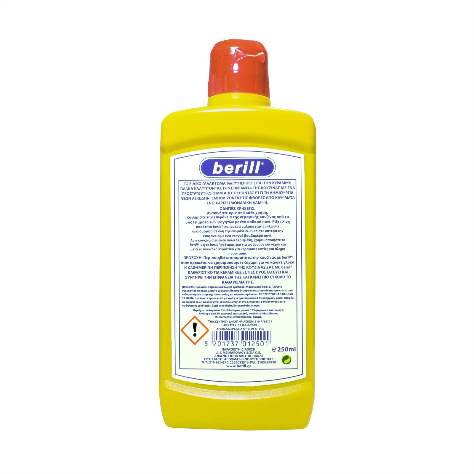 Ρίξτε λίγη ποσότητα berill® γαλάκτωμα καθαριστικό κεραμικής κουζίνας και με ένα χαρτί κουζίνας απλώστε ομοιόμορφα σε όλη την κουζίνα.