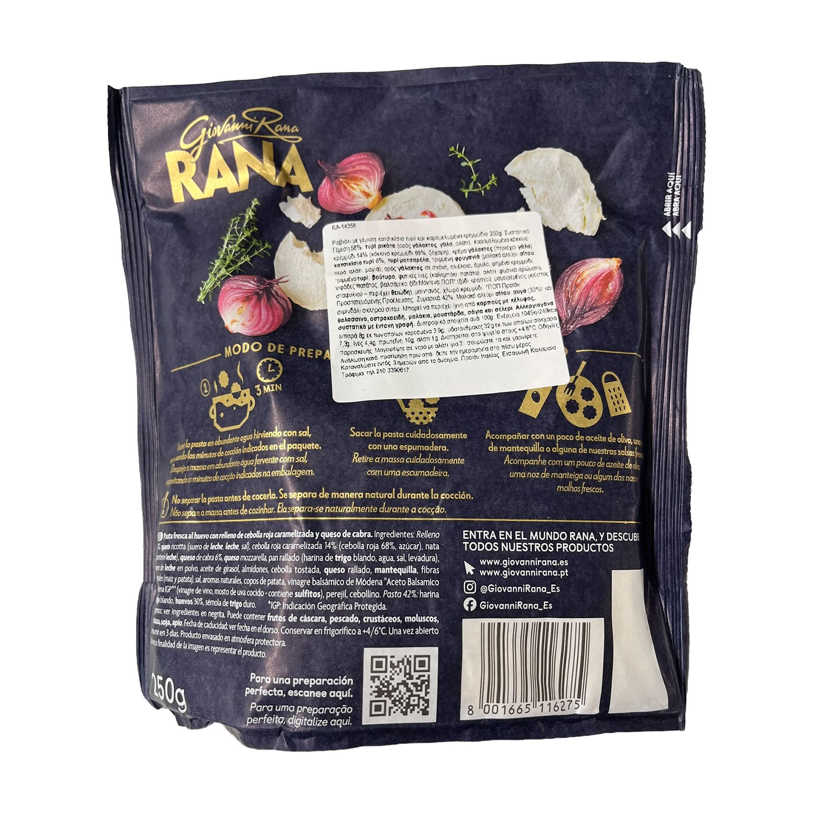 Ραβιόλι RANA Gourmet με Κατσικίσιο Τυρί & Καραμελωμένα Κρεμμύδια 250g