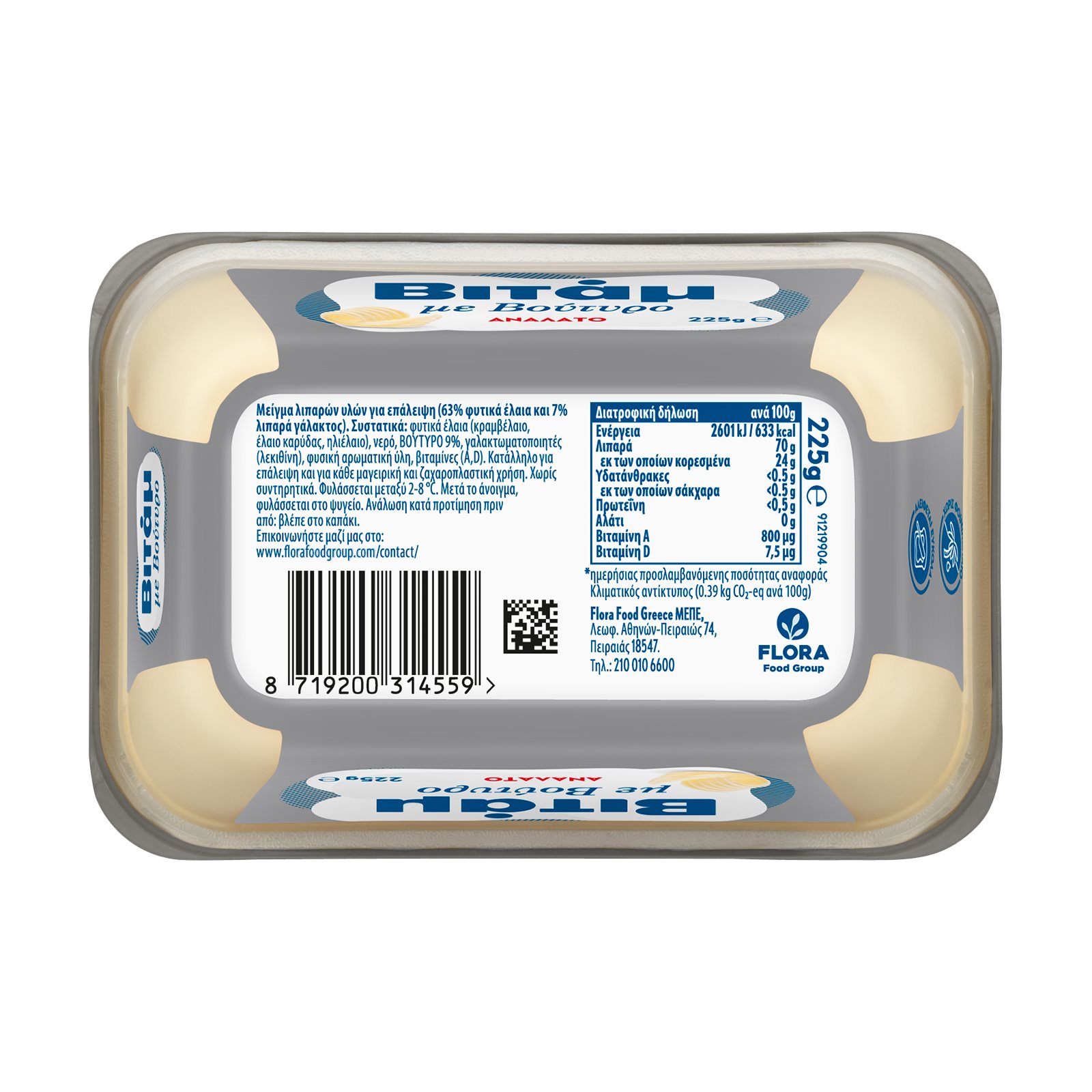 Μείγμα λιπαρών υλών για επάλειψη (63% φυτικά έλαια και 7% λιπαρά γάλακτος).