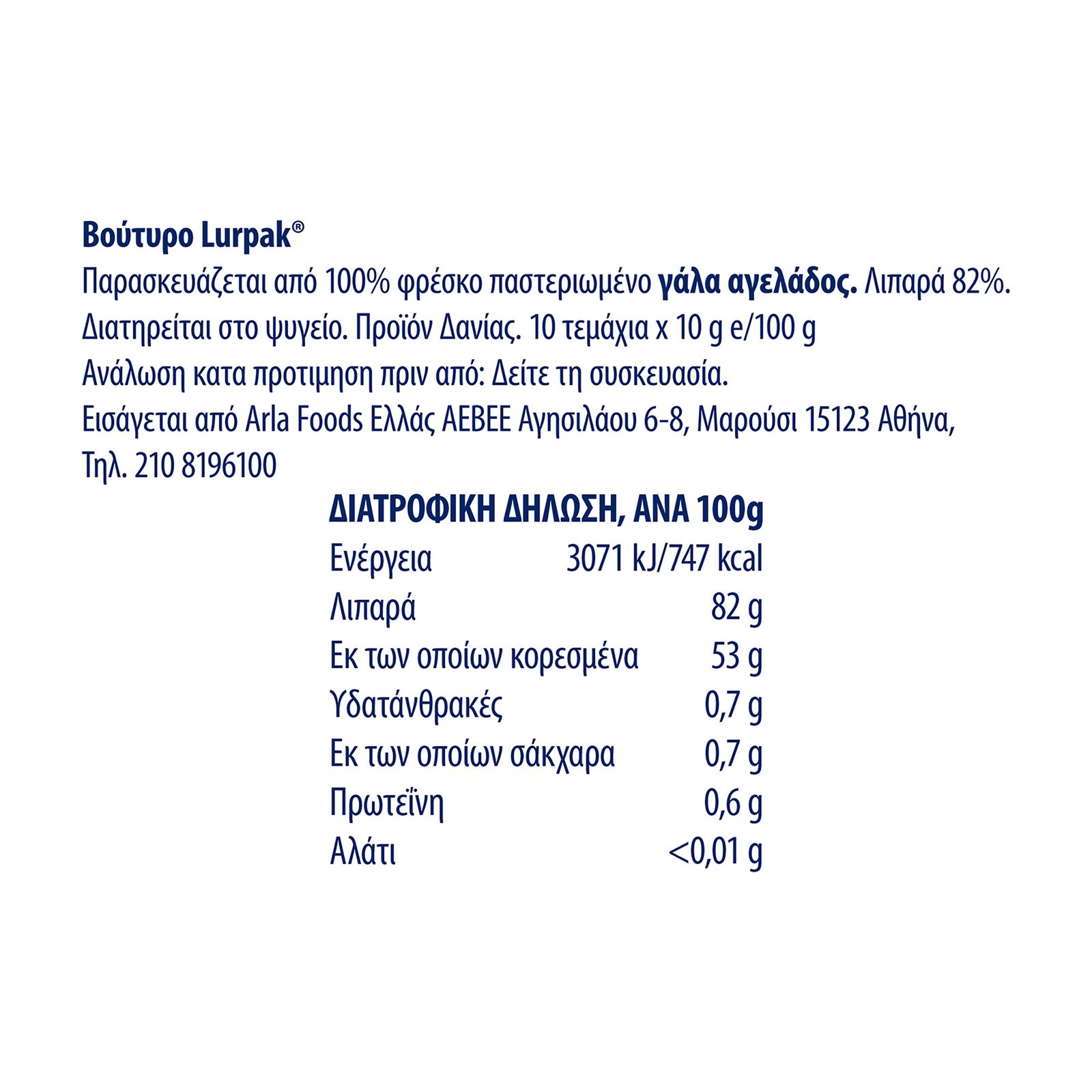 LURPAK Βούτυρο Ανάλατο μερίδες 10x10g