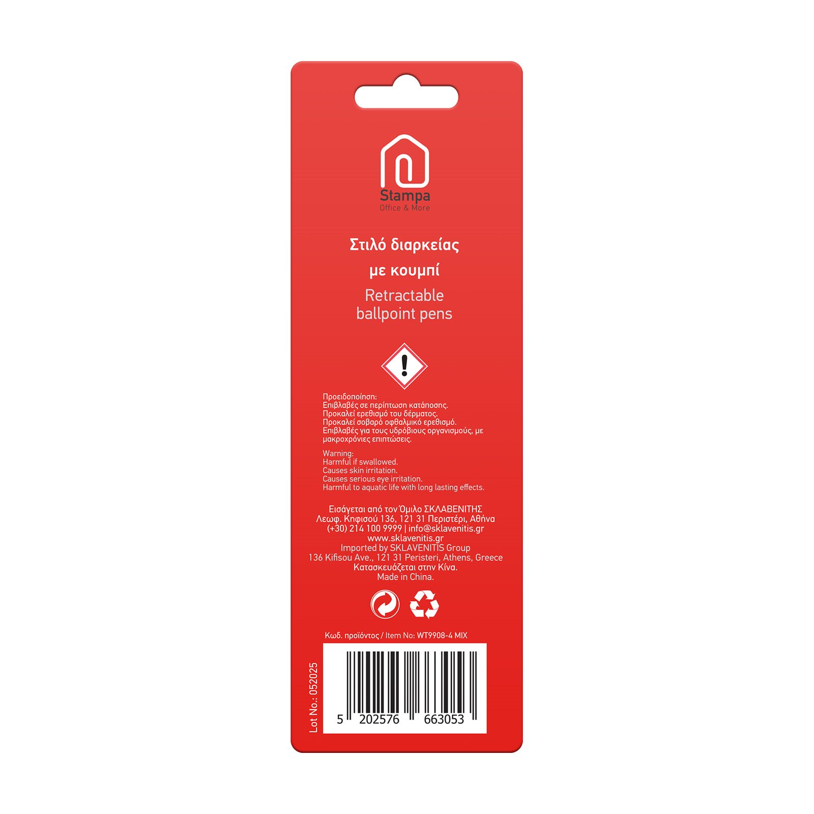 STAMPA Στιλό Διαρκείας με Κλιπ WT9908 4τεμ