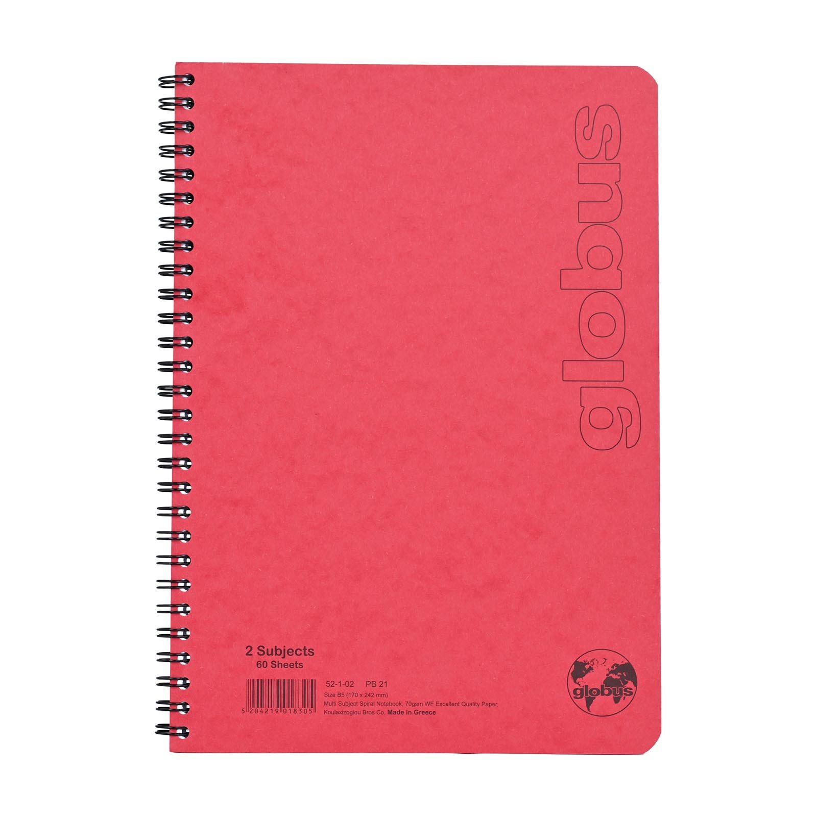 GLOBUS Τετράδιο Σπιράλ Β5 2 Θεμάτων Κόκκινο