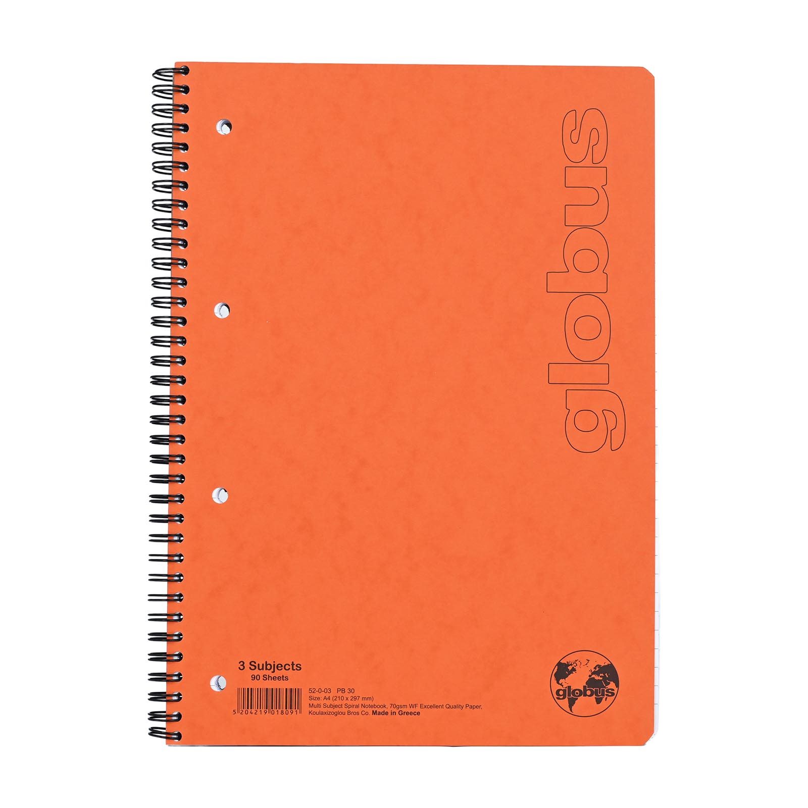 GLOBUS Τετράδιο Σπιράλ Α4 3 Θεμάτων Πορτοκαλί