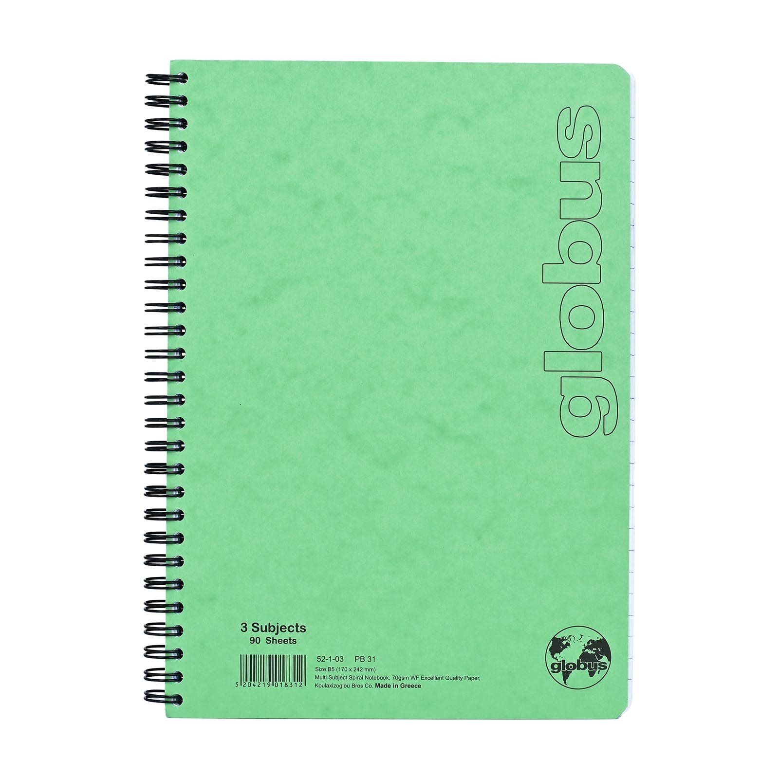 GLOBUS Τετράδιο Σπιράλ Β5 3 Θεμάτων Πράσινο
