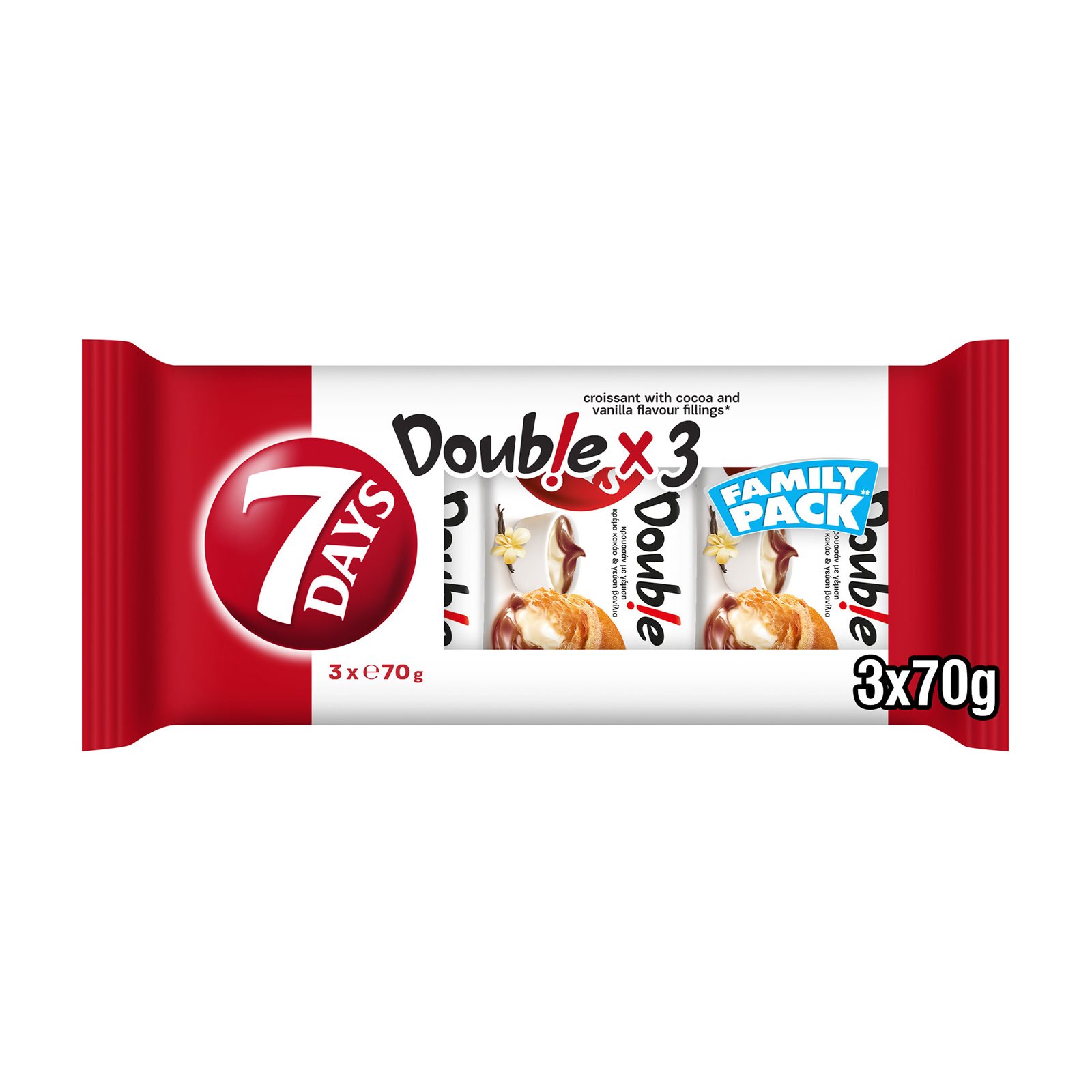 7DAYS Double Κρουασάν με γέμιση Κρέμα Κακάο & γεύση Βανίλια 3x70g