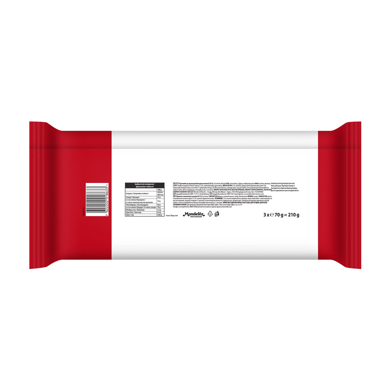 7DAYS Hazelnut Κρουασάν με γέμιση Φουντουκιού 3Χ70g