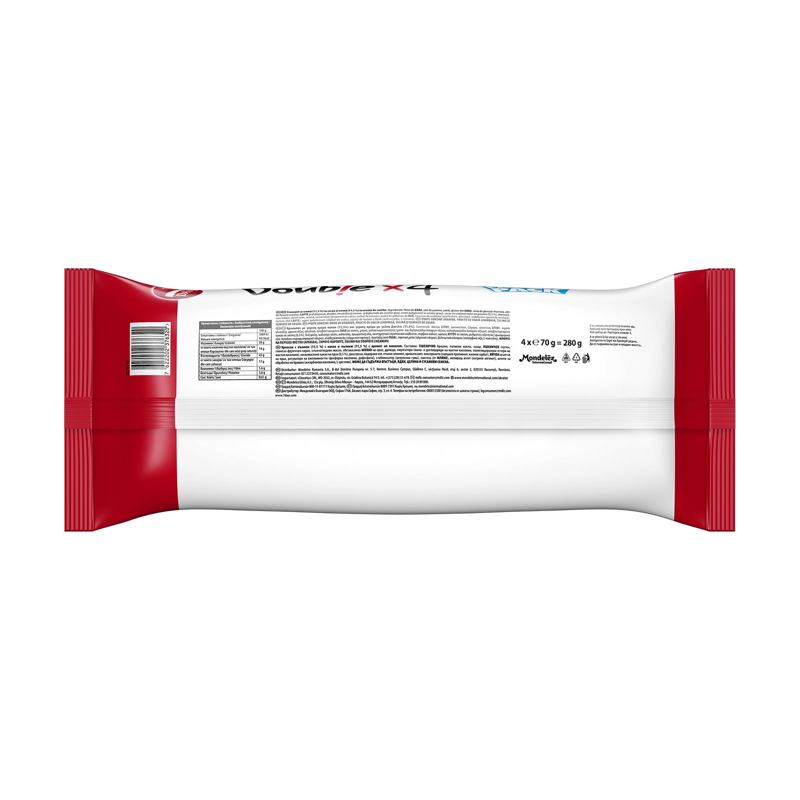 7DAYS Double x4 Κρουασάν με γέμιση Κρέμα Κακάο & γεύση Βανίλια 4x70g