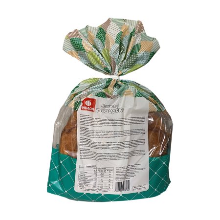 Αλεύρι ΣΙΤΟΥ, ζάχαρη, ΑΥΓΟ, φυτικό έλαιο (ηλιέλαιο), γάλα πλήρες σκόνη, ζύμη αρτοποιίας, φυτική μαργαρίνη (φυτικά έλαια & λίπη (βαμβακέλαιο, ηλιέλαιο, φοινικέλαιο), φυτικά υδρογονωμένα έλαια & λίπη (βαμβακέλαιο, ηλιέλαιο, φοινικέλαιο), γαλακτωματοποιητής (μονό- & διγλυκερίδια λιπαρών οξέων), αλάτι, μέσο οξίνισης (κιτρικό οξύ), συντηρητικό (σορβικό κάλιο), αρωματική ύλη, χρωστική (β-καροτένιο)), δεξτρόζη, μαχλέπι, κακουλέ, γαλακτωματοποιητές (μονό- & διγλυκερίδια των λιπαρών οξέων, εστέρες του μονο- και διακετυλοτρυγικού οξέος με μονο- και διγλυκερίδια λιπαρών οξέων), αρωματικές ύλες, συντηρητικό (προπιονικό ασβέστιο), μέσο οξίνισης (διοξικό νάτριο), σταθεροποιητές (σορβιτόλη, κόμμι ξανθάνης, στεαροϋλο-2-γαλακτυλικό νάτριο), φυσικό μαστιχέλαιο.