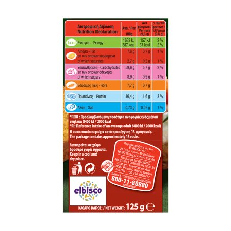 Η συσκευασία περιέχει κατά προσέγγιση 13 φρυγανιές. |