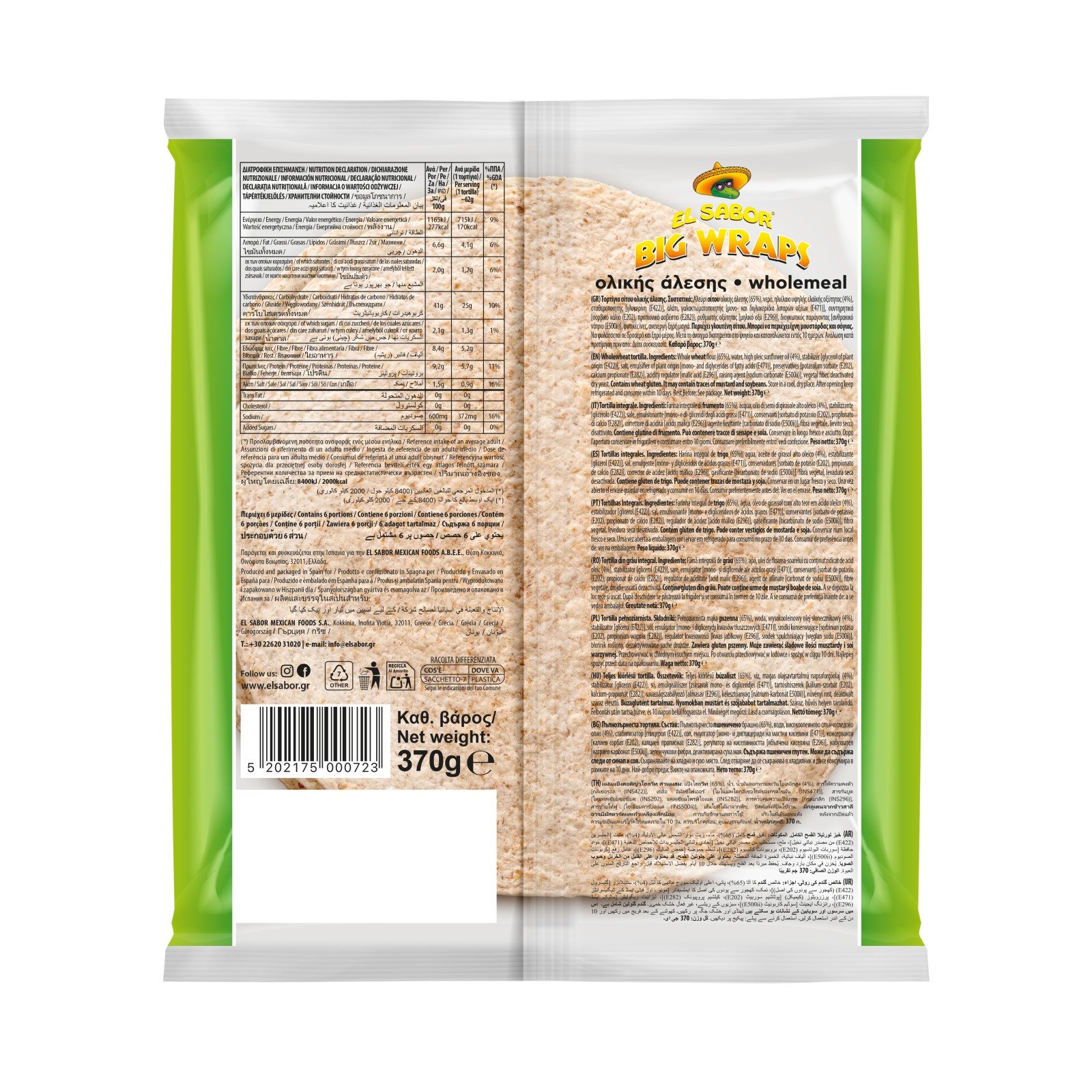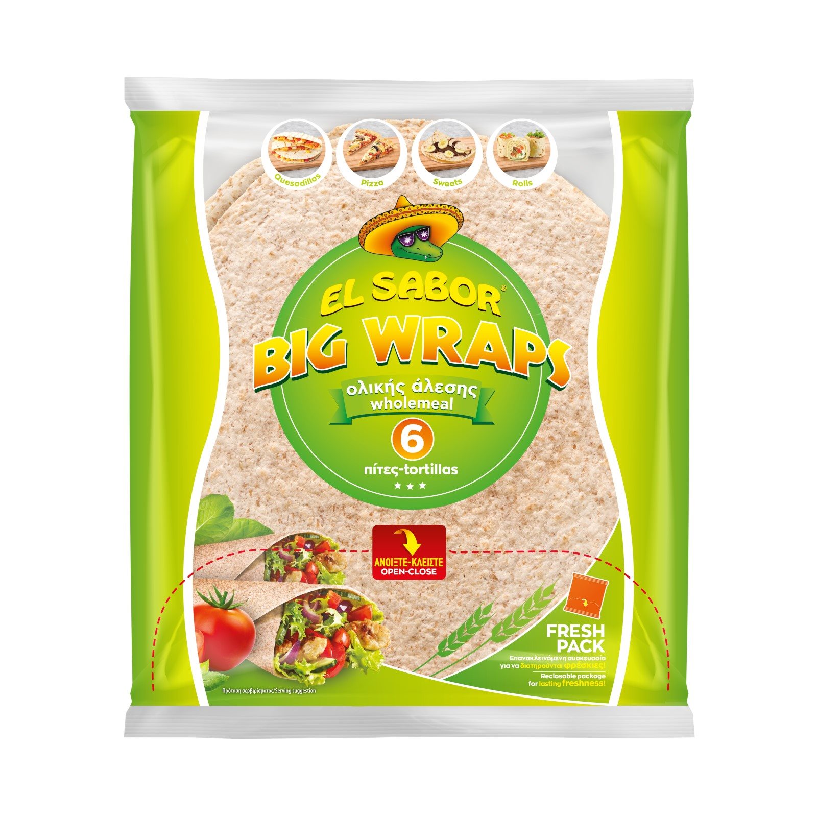 EL SABOR Wholemeal Big Wraps Πίτες Τορτίγιες Ολικής Άλεσης 6τεμ 370g