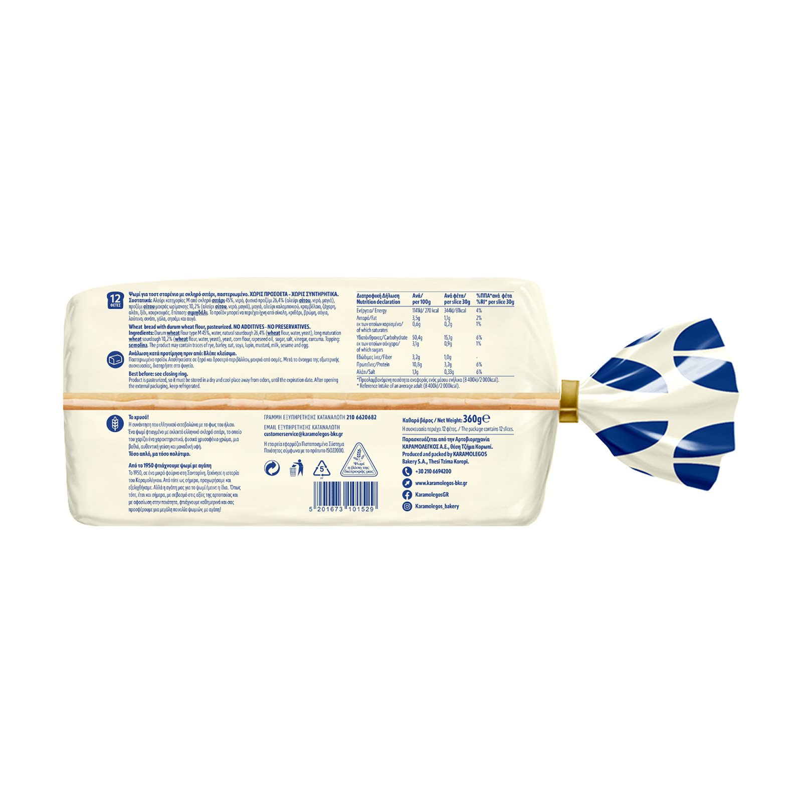 ΚΑΡΑΜΟΛΕΓΟΣ Ψωμί για Τοστ Το Χρυσό 360g