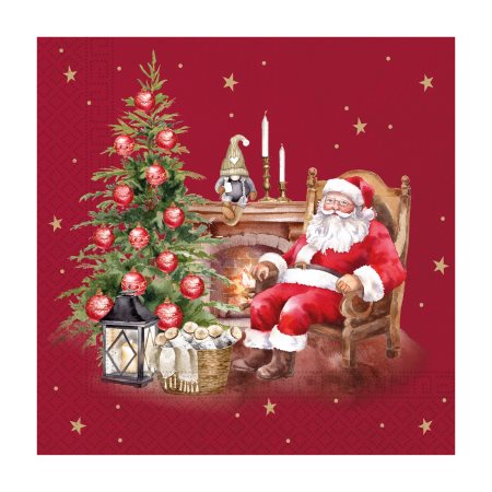 DECORATA Χαρτοπετσέτες Χριστουγεννιάτικες Κόκκινες Άγιος Βασίλης στο Τζάκι 33X33cm 3 Φύλλων 20τεμ 85g