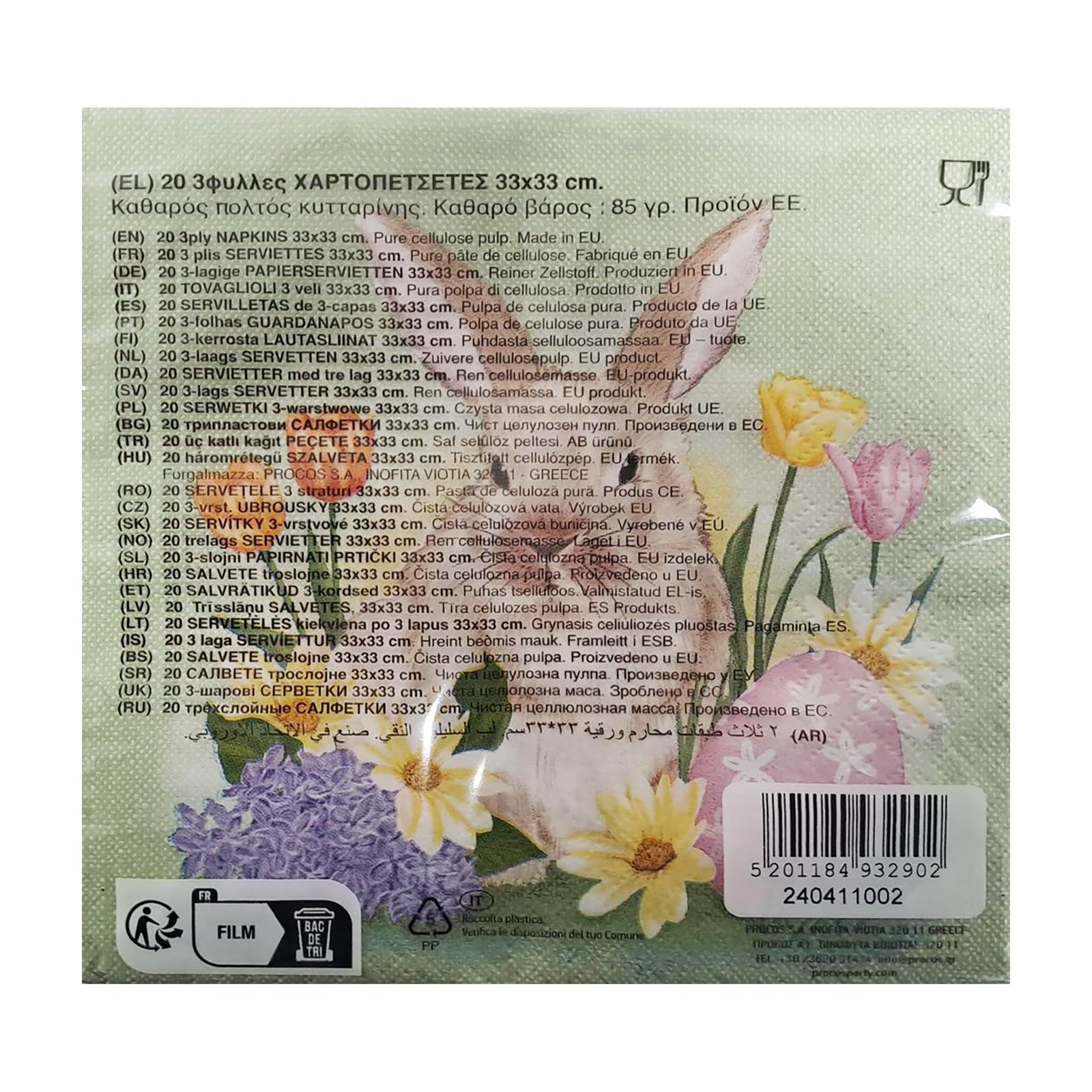DECORATA Χαρτοπετσέτες Πασχαλινές Λαγός 33X33cm 20τεμ 85g