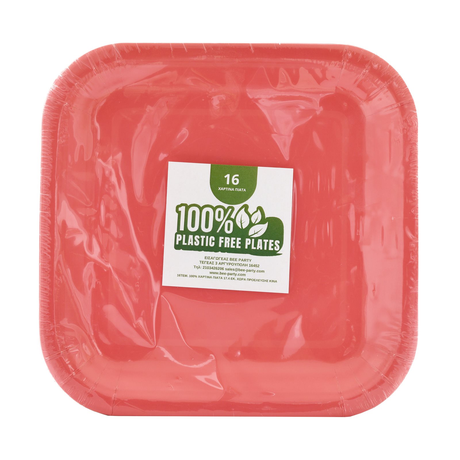 Πιάτα Μεσαία Χάρτινα Τετράγωνα 100% Plastic Free Κόκκινο 17,4cm 16τεμ