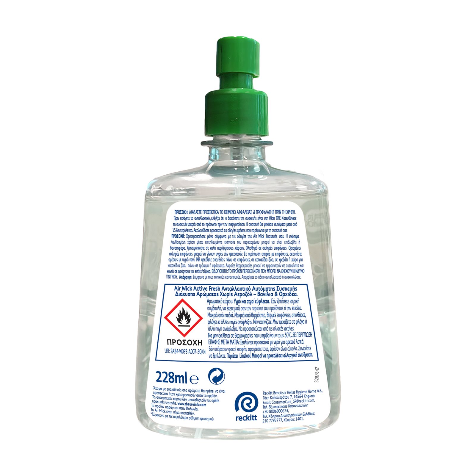ΠΡΟΣΟΧΗ: Χρησιμοποιήστε μόνο σύμφωνα με τις οδηγίες της Air Wick Συσκευής σας. Η σκόπιμα λανθασμένη χρήση μέσω επιτηδευμένης εισπνοής του περιεχομένου μπορεί να είναι επιβλαβής ή θανατηφόρα. Χρησιμοποιείτε σε καλά αεριζόμενους χώρους.