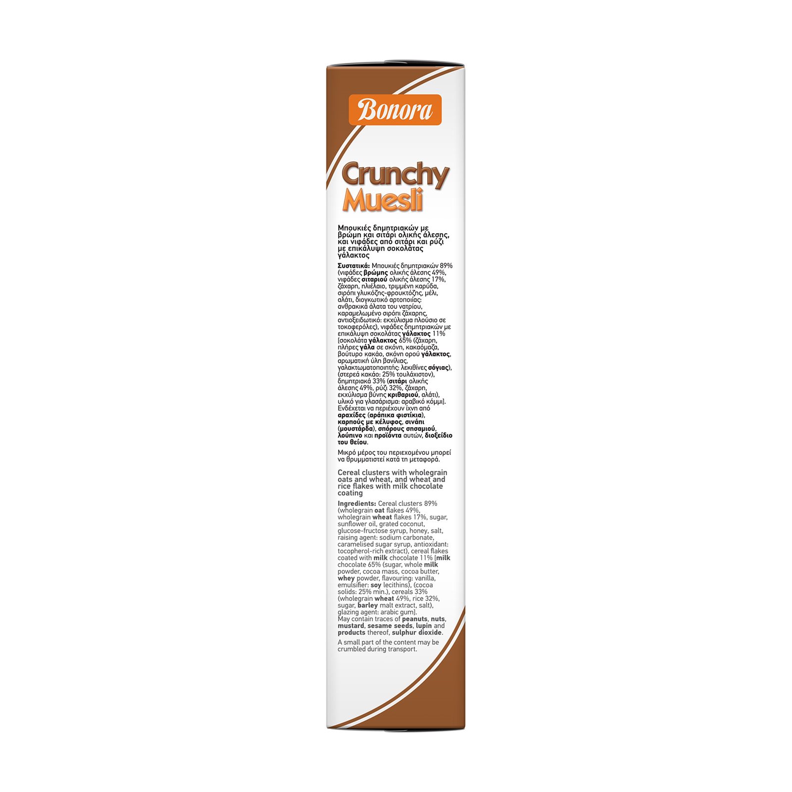 Μπουκιές δημητριακών 89% (νιφάδες ΒΡΩΜΗΣ ολικής άλεσης 49%, νιφάδες ΣΙΤΑΡΙΟΥ ολικής άλεσης 17%, ζάχαρη, ηλιέλαιο, τριμμένη καρύδα, σιρόπι γλυκόζης -φρουκτόζης, μέλι, αλάτι, διογκωτικό αρτοποιίας: ανθρακικά άλατα του νατρίου, καραμελωμένο σιρόπι ζάχαρης, αντιοξειδωτικό: εκχύλισμα πλούσιο σε τοκοφερόλες), νιφάδες δημητριακών με επικάλυψη σοκολάτας ΓΑΛΑΚΤΟΣ 11% [σοκολάτα ΓΑΛΑΚΤΟΣ 65% (ζάχαρη, πλήρες ΓΑΛΑ σε σκόνη, κακαόμαζα, βούτυρο κακάο, σκόνη ορού ΓΑΛΑΚΤΟΣ, αρωματική ύλη βανίλιας, γαλακτωματοποιητής: λεκιθίνες ΣΟΓΙΑΣ), (στερεά κακάο: 25% τουλάχιστον), δημητριακά 33% (ΣΙΤΑΡΙ ολικής άλεσης 49%, ρύζι 32%, ζάχαρη, εκχύλισμα βύνης ΚΡΙΘΑΡΙΟΥ, αλάτι), υλικό για γλασάρισμα: αραβικό κόμμι].