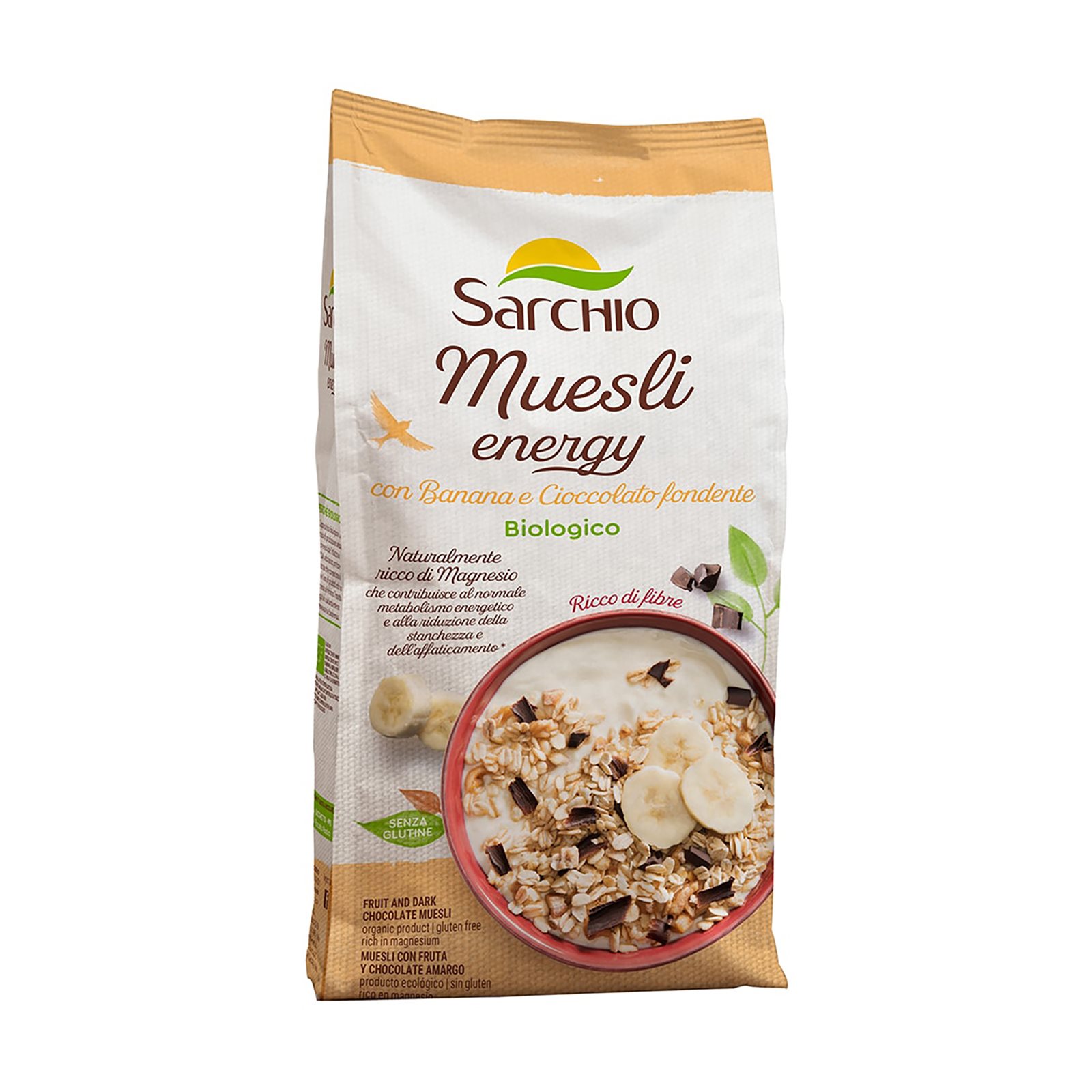 SARCHIO Energy Μούσλι με Μπανάνα & Σοκολάτα Βιολογικό Χωρίς γλουτένη 250g