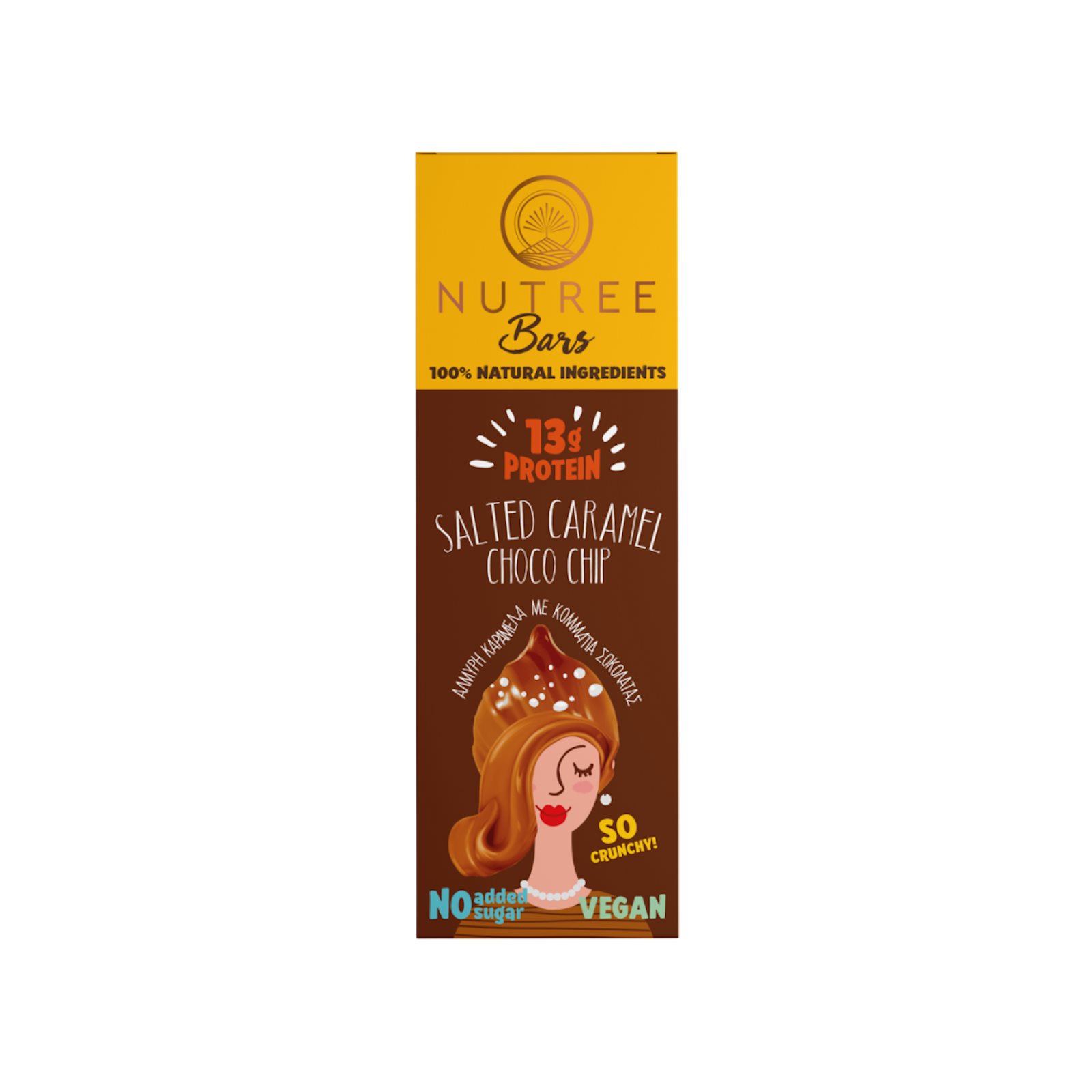 NUTREE Μπάρα Πρωτεΐνης Αλμυρή Καραμέλα & Κομμάτια Σοκολάτας Vegan Χωρίς γλουτένη Χωρίς προσθήκη ζάχαρης 50g