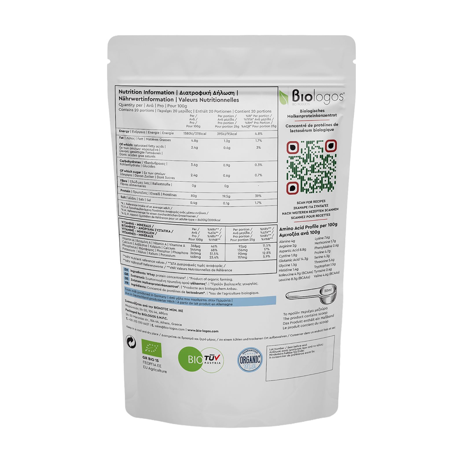ΒΙΟΛΟΓΟΣ Πρωτεΐνη Ορού Γάλακτος Βιολογική Χωρίς γλουτένη Χωρίς προσθήκη ζάχαρης 500g