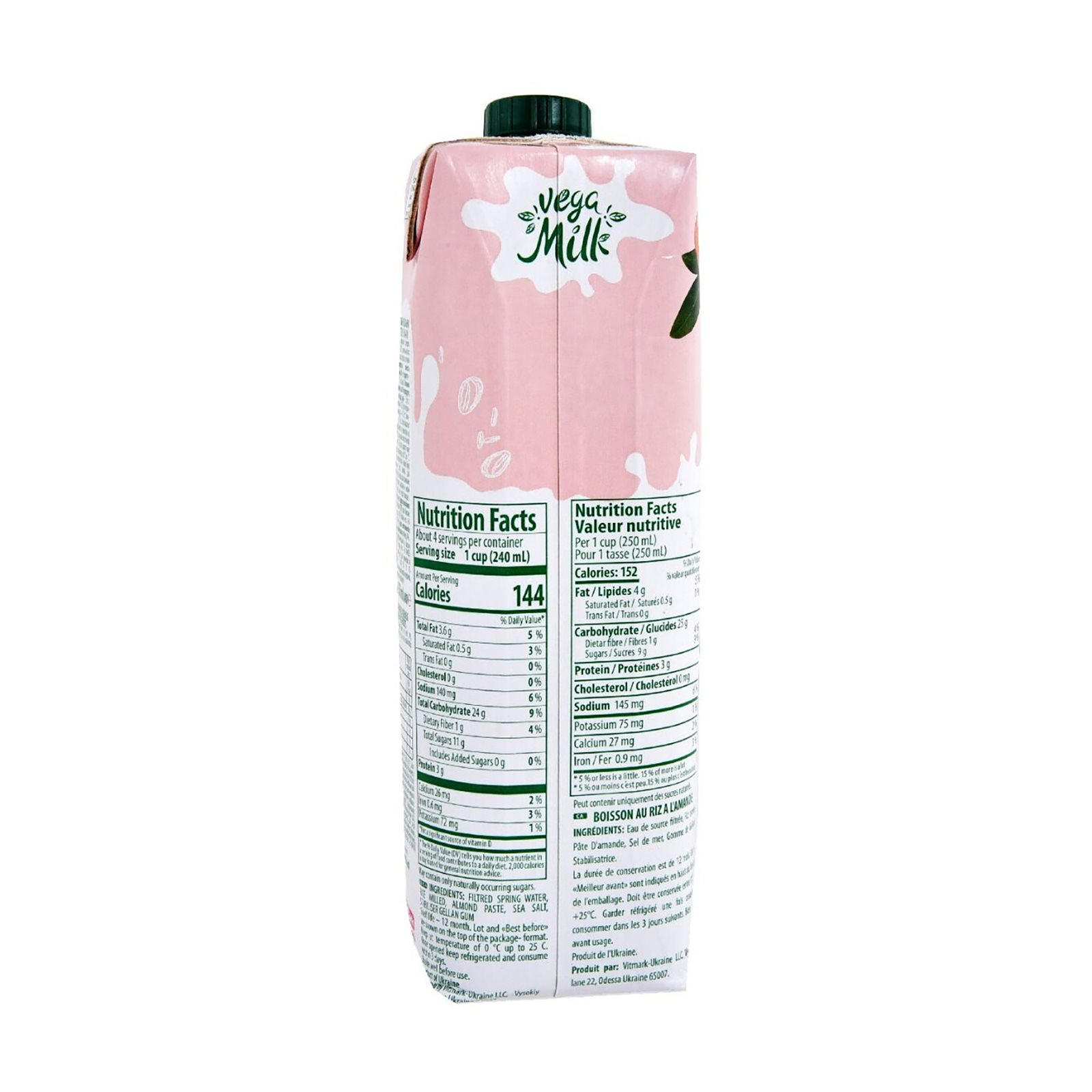 VEGA MILK Ρόφημα Αμυγδάλου Ρυζιού Χωρίς γλουτένη Χωρίς προσθήκη ζάχαρης 950ml