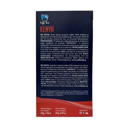 COFFEE LAB Καφές Espresso Kenya 10 κάψουλες συμβατές με μηχανή Nespresso 52g
