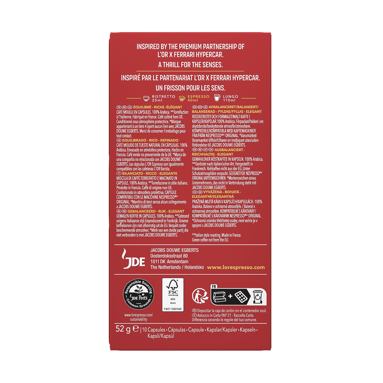 L'OR Καφές Espresso Maranelo Ristretto 10 κάψουλες συμβατές με μηχανή Nespresso 52g