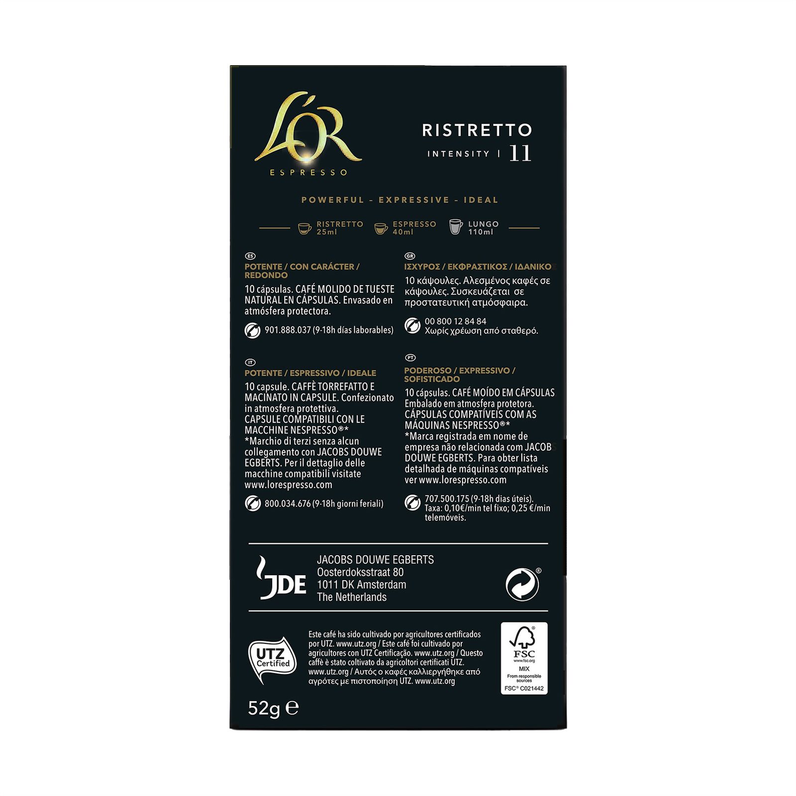 L'OR Καφές Espresso Ristretto 10 κάψουλες συμβατές με μηχανή Nespresso 52g
