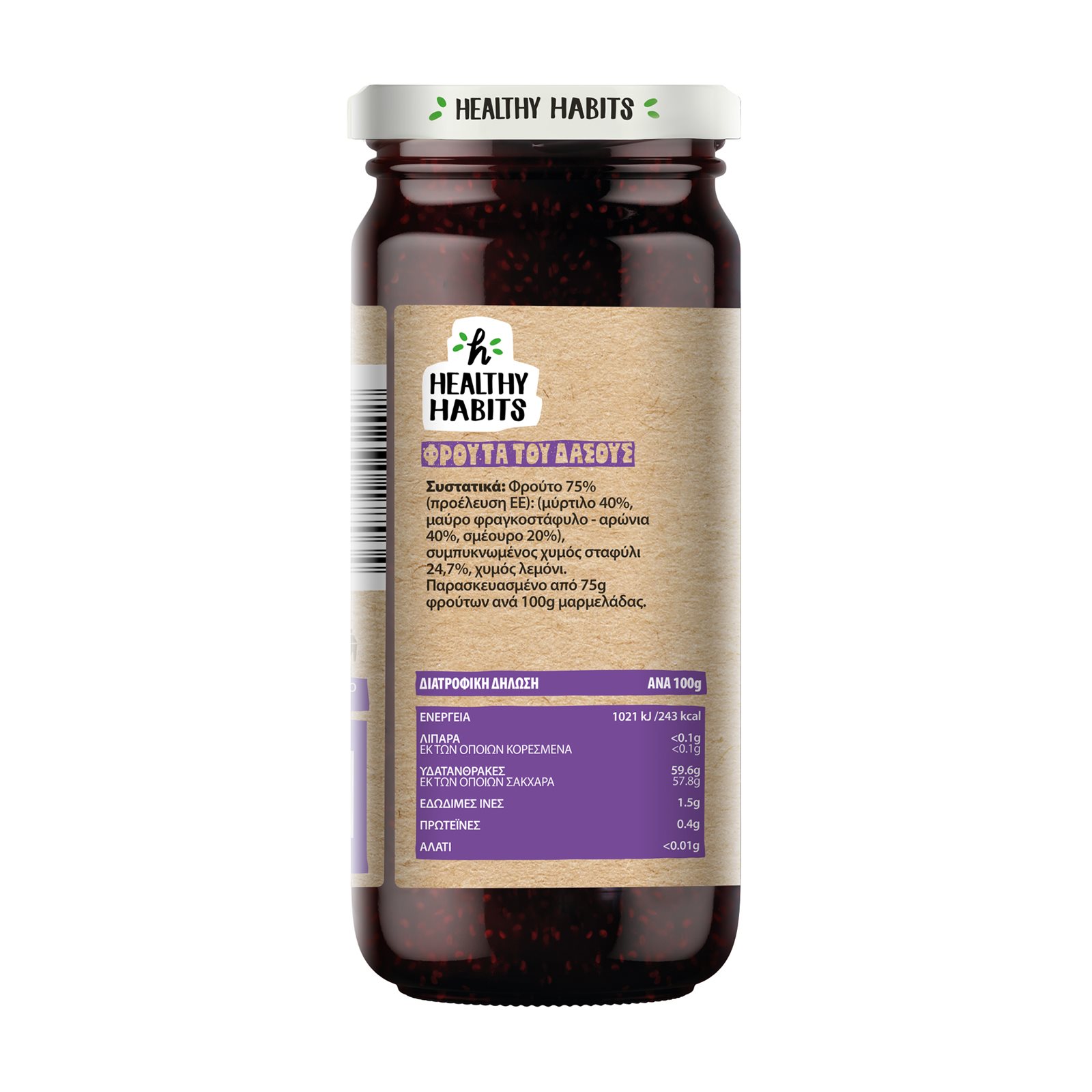 HEALTHY HABITS Μαρμελάδα με Φρούτα του Δάσους Vegan Χωρίς πρόσθετη ζάχαρη 280g