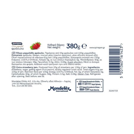 SPIN SPAN Extra Μαρμελάδα Φράουλα Χωρίς γλουτένη 380g