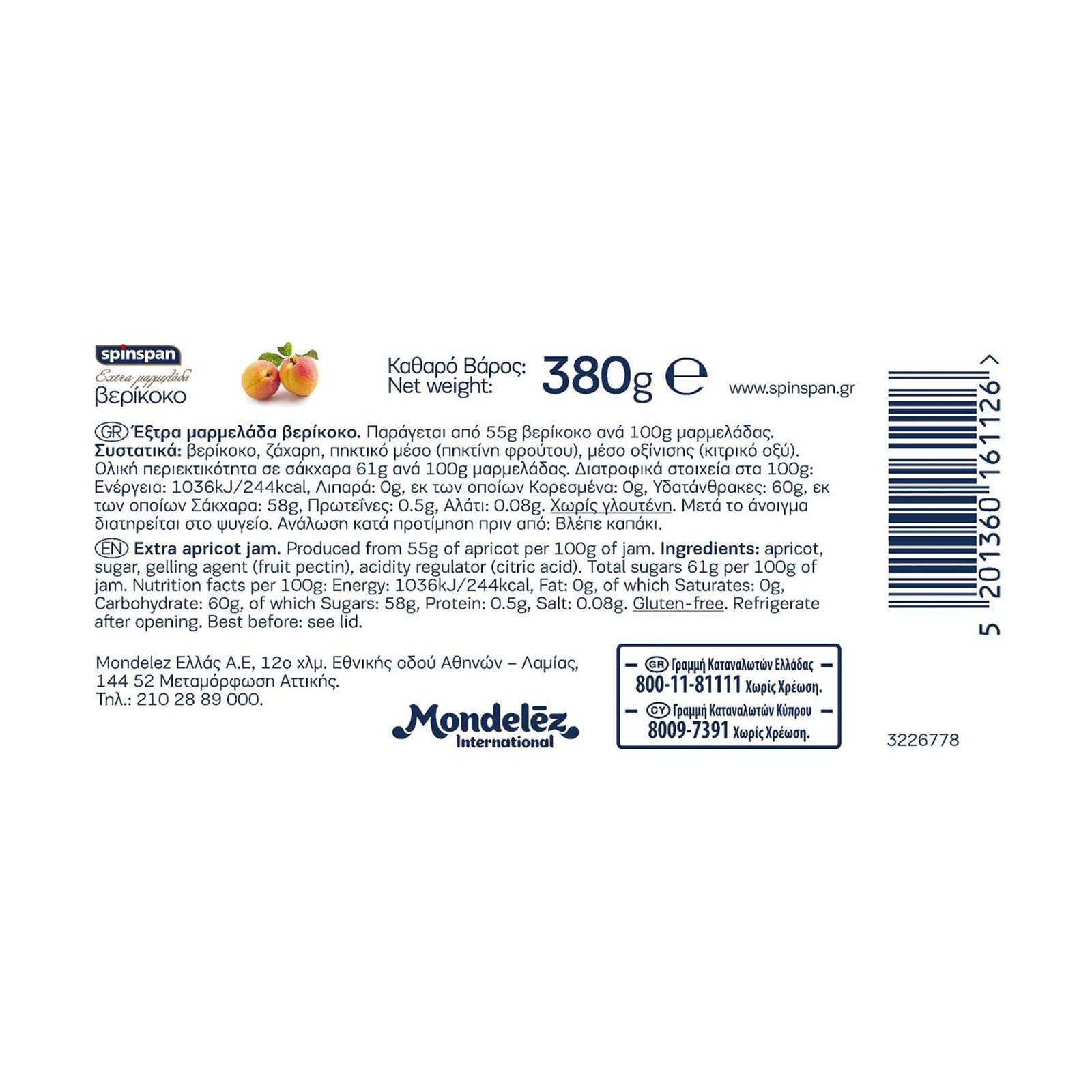 SPIN SPAN Extra Μαρμελάδα Βερίκοκο Χωρίς γλουτένη 380g