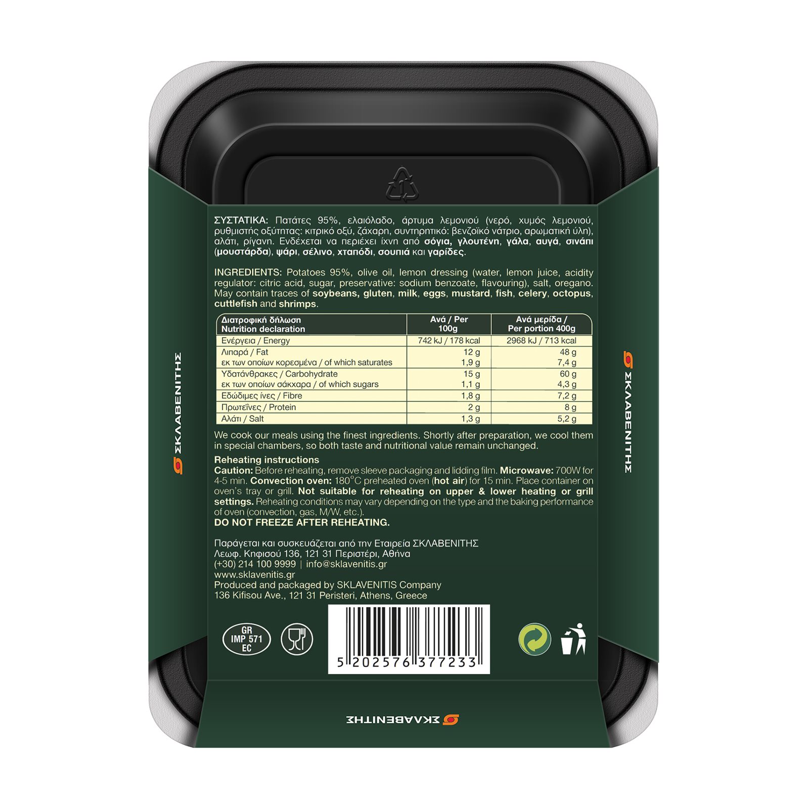 Παράγεται και συσκευάζεται από την Εταιρεία ΣΚΛΑΒΕΝΙΤΗΣ, Λεωφ. Κηφισού 136, 121 31 Περιστέρι, Αθήνα - Τηλ: (+30) 214 100 9999, Email: info@sklavenitis.gr, Ιστοσελίδα: www.sklavenitis.gr