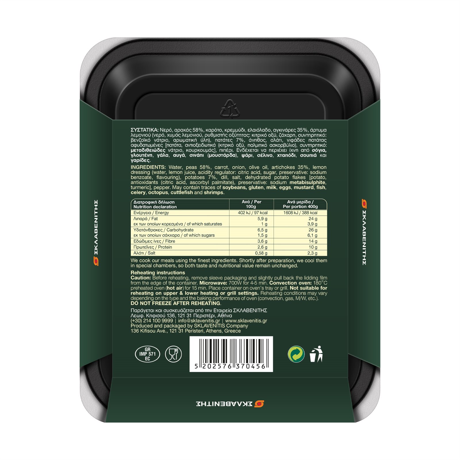 Παράγεται και συσκευάζεται από την Εταιρεία ΣΚΛΑΒΕΝΙΤΗΣ, Λεωφ. Κηφισού 136, 121 31 Περιστέρι, Αθήνα - Τηλ: (+30) 214 100 9999, Email: info@sklavenitis.gr, www.sklavenitis.gr