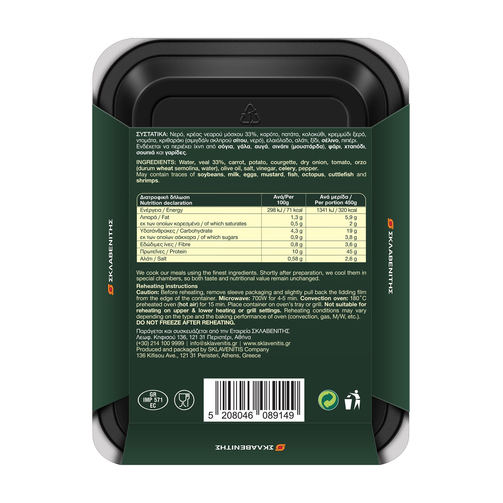 Παράγεται και συσκευάζεται από την Εταιρεία ΣΚΛΑΒΕΝΙΤΗΣ, Λεωφ. Κηφισού 136, 121 31 Περιστέρι, Αθήνα - Τηλ: (+30) 214 100 9999, Email: info@sklavenitis.gr, Ιστοσελίδα: www.sklavenitis.gr