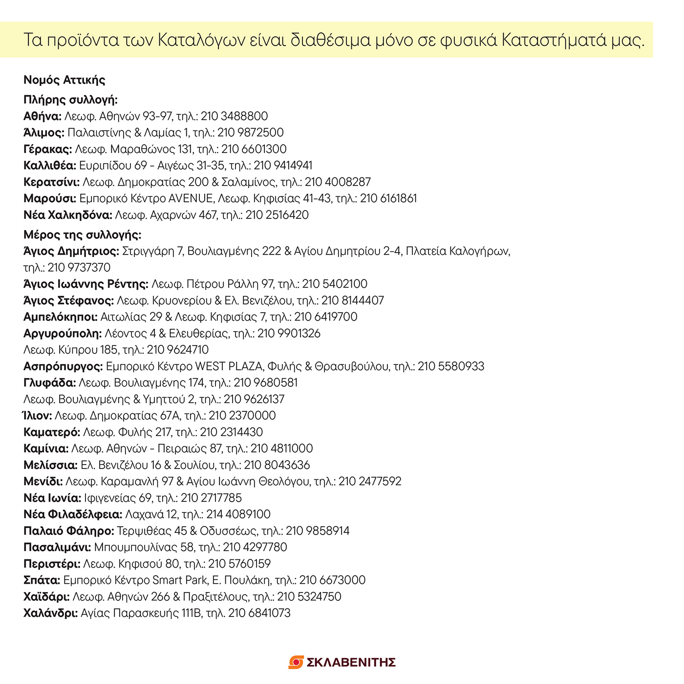 Τα προϊόντα των Καταλόγων είναι διαθέσιμα μόνο σε φυσικά Καταστήματά μας.