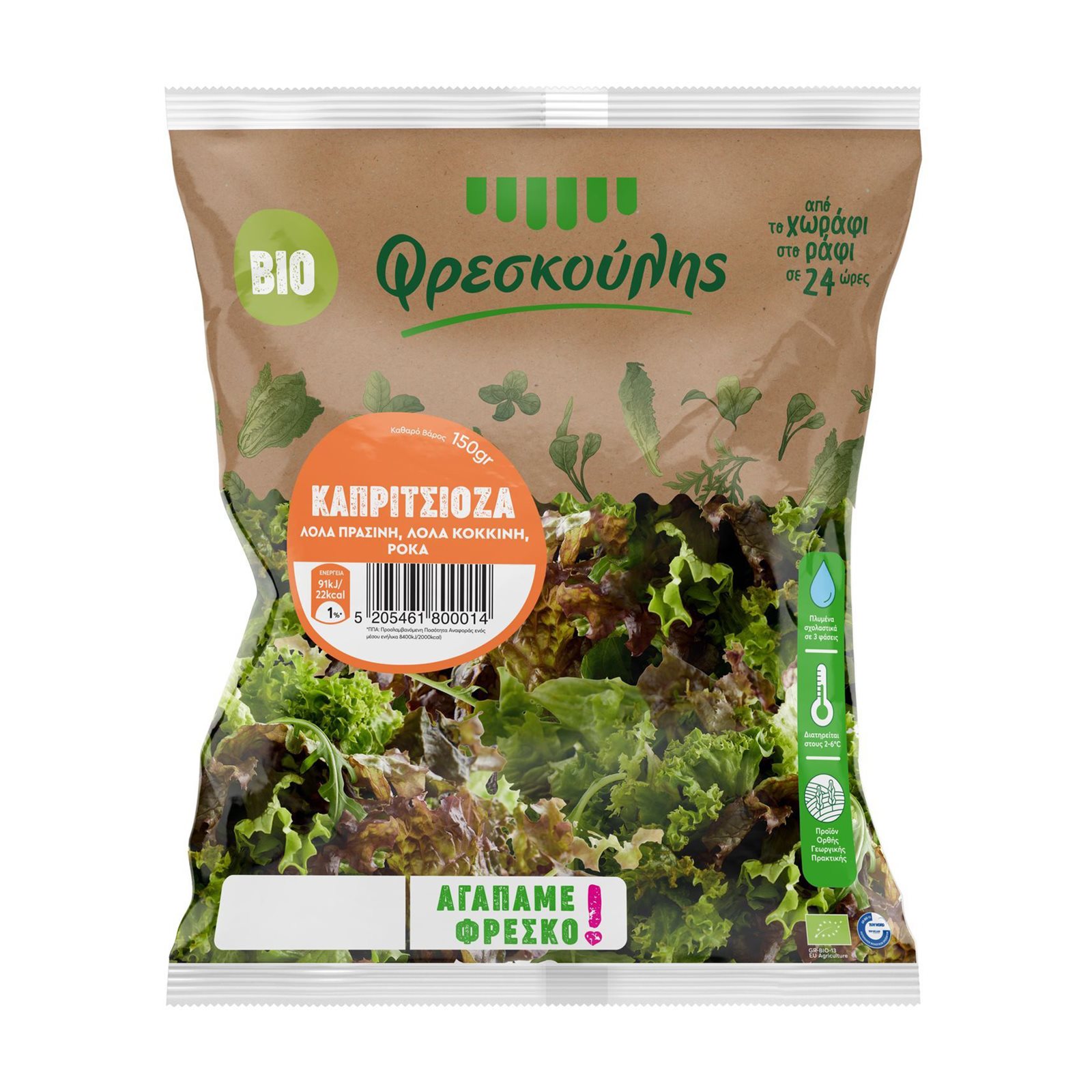 Συσκευάζεται από την EUROCATERING Α.Ε., Νερατζούλας 21, 136 72 Αχαρνές, Αθήνα - Τηλ: 210 2400869, Email: info@freskoulis.gr