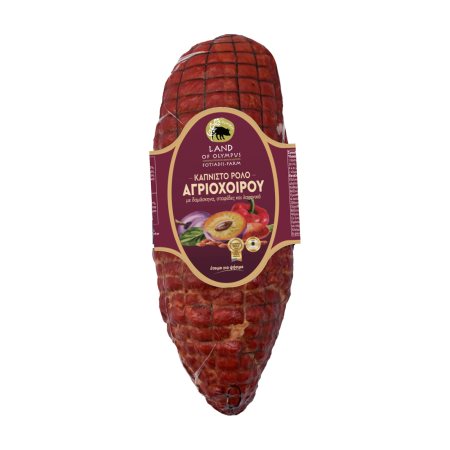 Κρέας αγριόχοιρου ελληνικό 69%, ξηρά δαμάσκηνα χωρίς κουκούτσι E.E. (δαμάσκηνα, συντηρητικό: σορβικό οξύ, ηλιέλαιο) 10%, σταφίδες εκτός E.E. 7%, καρότο Ε.Ε. 6%, πιπεριά κόκκινη Ε.Ε. 6%, τροποποιημένο άμυλο, πρωτεΐνη ΣΟΓΙΑΣ, αλάτι, φυτικές ίνες πατάτας, ζάχαρη, εκχύλισμα μαγιάς, κρεμμύδι σε σκόνη, εκχύλισμα λευκού κρασιού, ρυθμιστές οξύτητας: ανθρακικά άλατα νατρίου, κιτρικά άλατα νατρίου, κιτρικό οξύ, σταθεροποιητές: τριφωσφορικά άλατα, διφωσφορικά άλατα, αντιοξειδωτικό: ασκορβικό νάτριο, αρωματικές ύλες, συντηρητικό: νιτρώδες νάτριο.