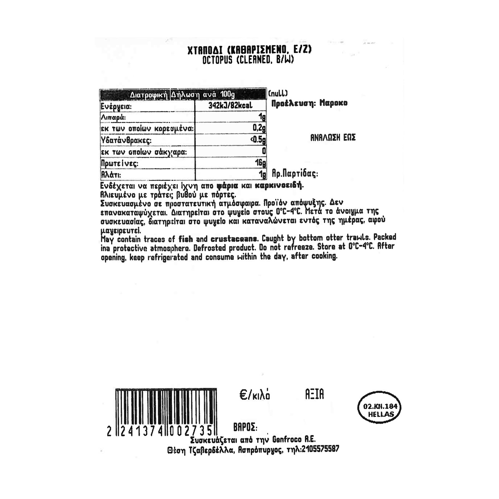 Χταπόδι Καθαρισμένο Αποψυγμένο ΕΝΑΛΙΟΝ Μαρόκου