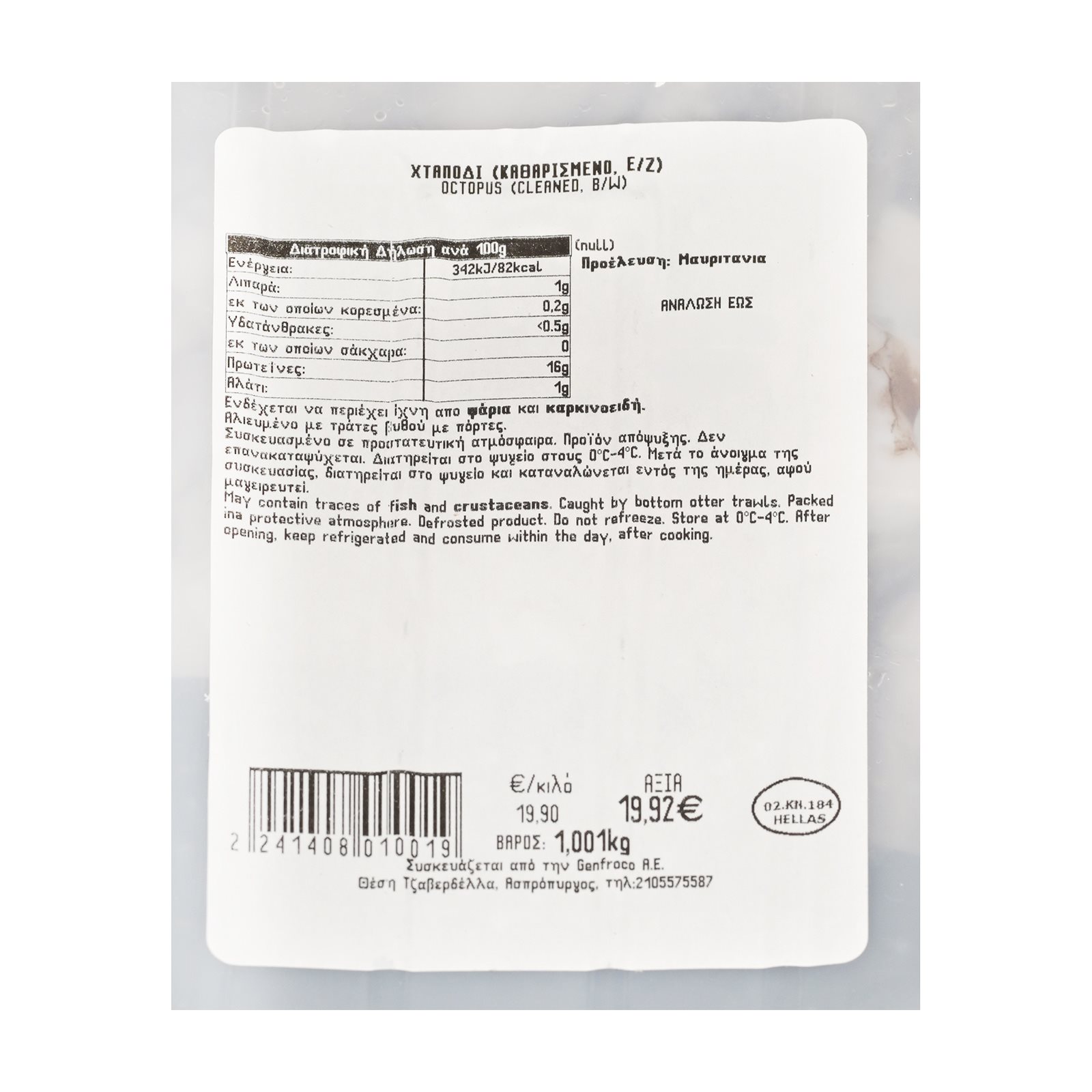 Χταπόδι καθαρισμένο Μαυριτανίας, έτοιμο για μαγείρεμα.