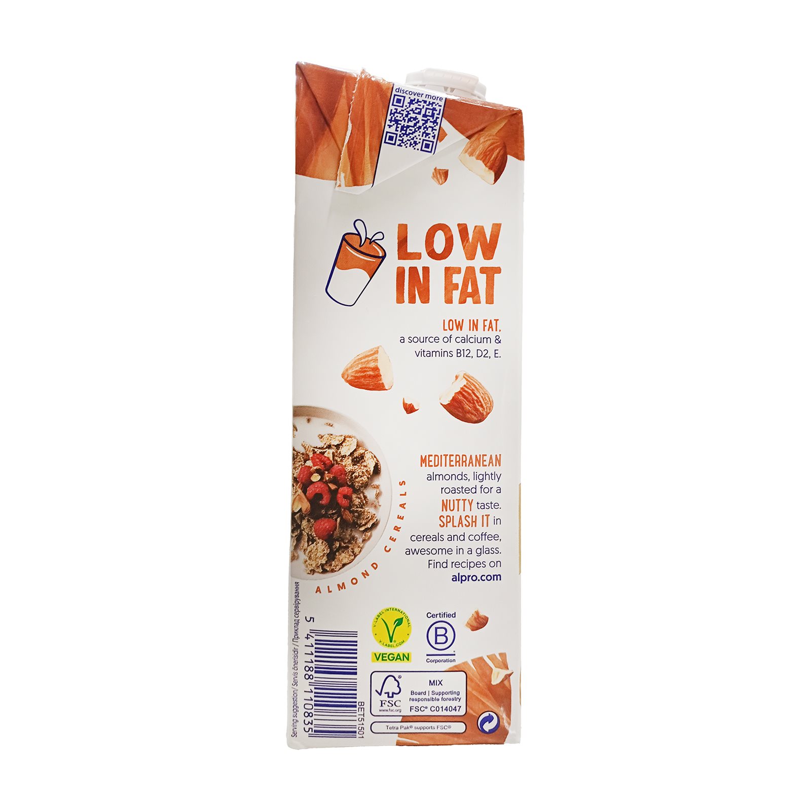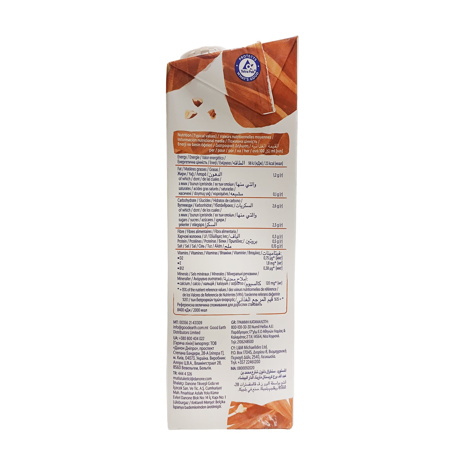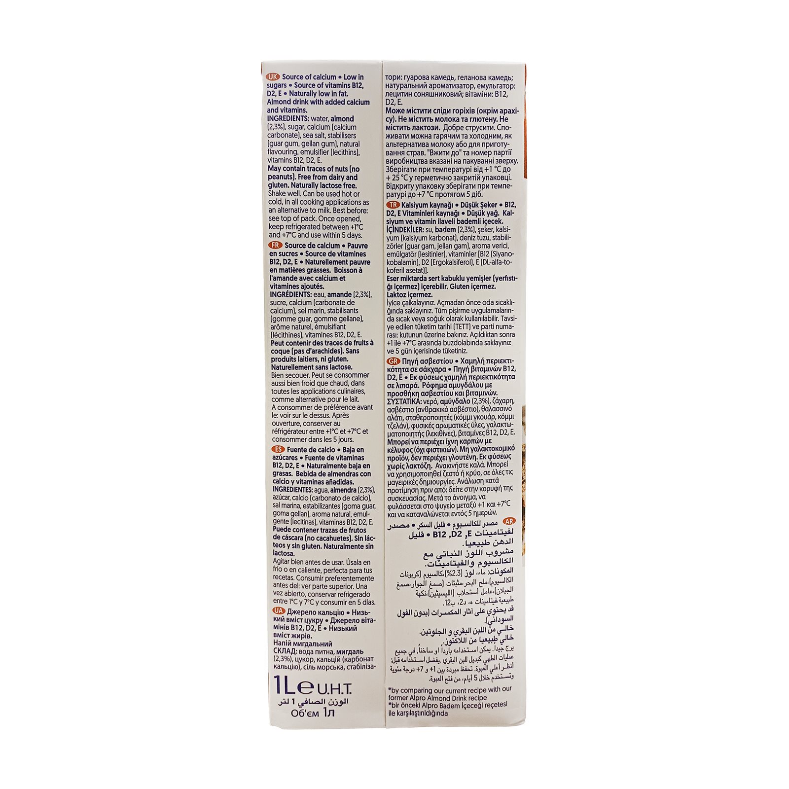 Νερό, ΑΜΥΓΔΑΛΟ (2,3%), ζάχαρη, ασβέστιο (ανθρακικό ασβέστιο), θαλασσινό αλάτι, σταθεροποιητές (κόμμι γκουάρ, κόμμι τζελάν), φυσικές αρωματικές ύλες, γαλακτωματοποιητής (λεκιθίνες), βιταμίνες Β12, D2, E.