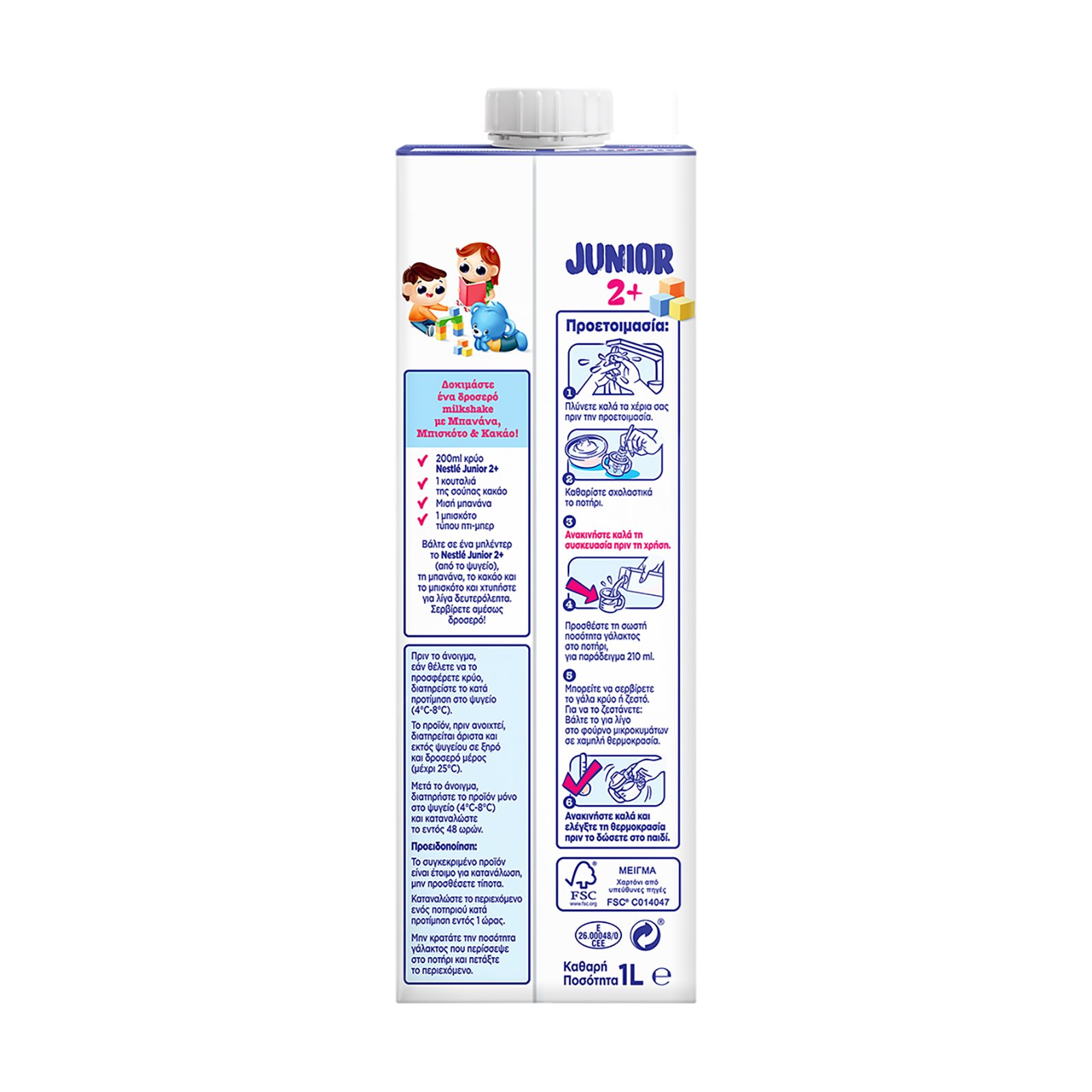 NESTLE Junior Ρόφημα Γάλακτος από 2+ ετών Χωρίς προσθήκη ζάχαρης 1lt
