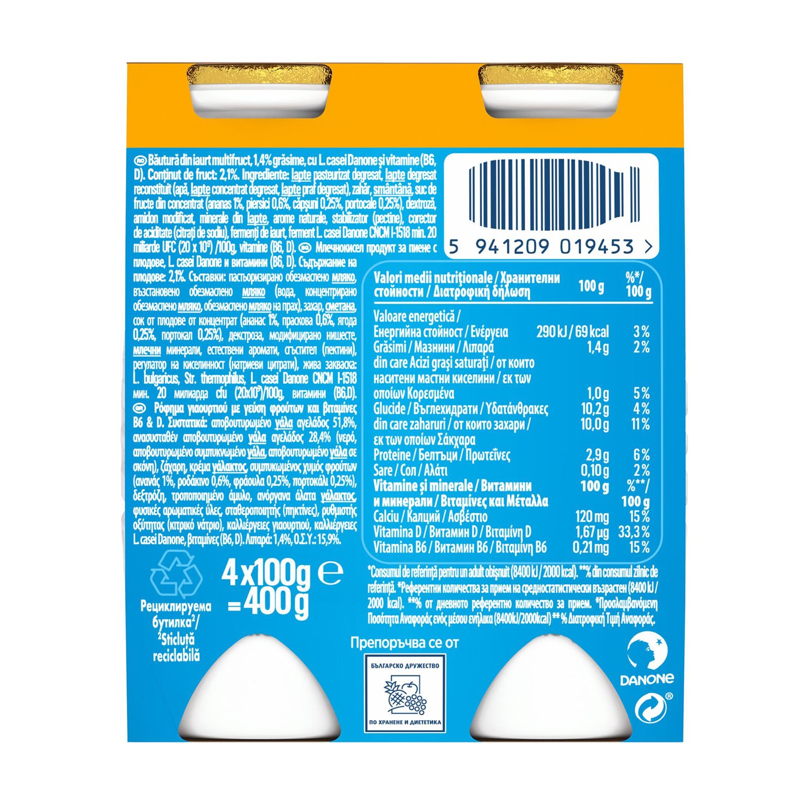 Ρόφημα γιαουρτιού με γεύση φρούτων και βιταμίνες Β6 & D.